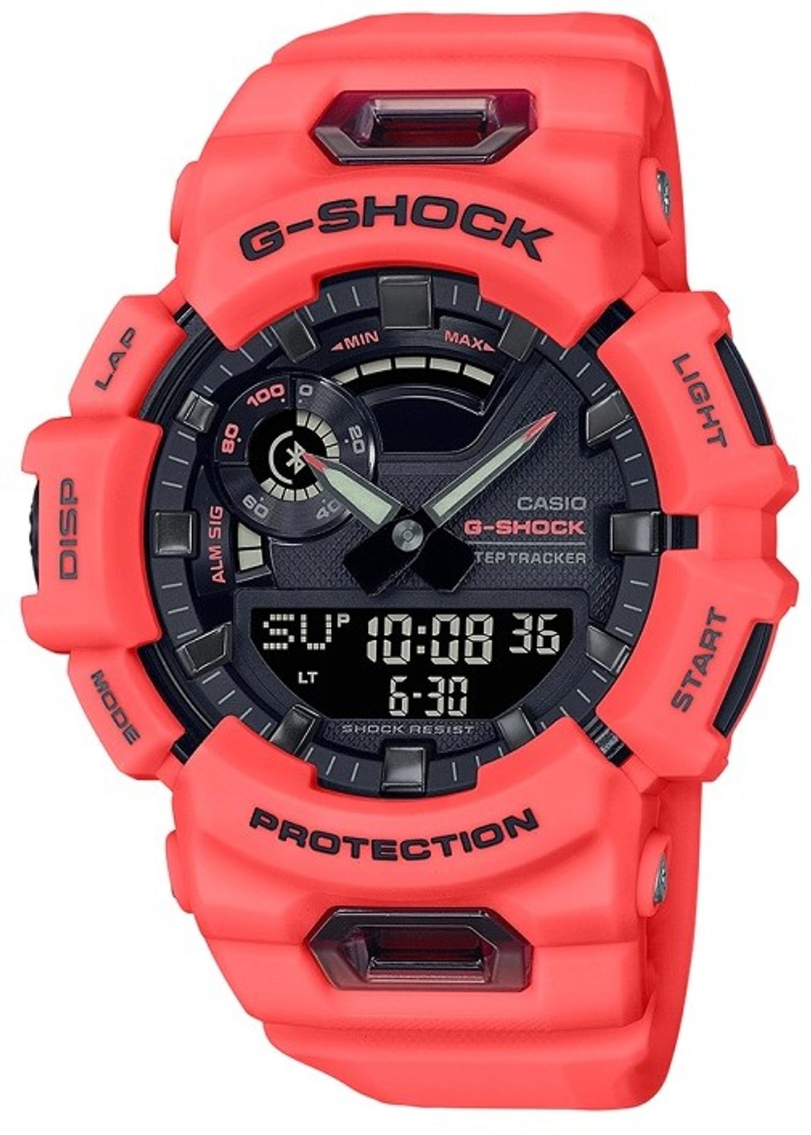 Casio G-Shock GBA 900-4A mají kombinovaný číselník (analogový a digitální), který zobrazuje datum, den v týdnu, stopky, budík a mnohé další funkce. Již standardem je zabudovaný krokoměr a možnost propojení s telefonem skrze bluetooth, díky čemuž můžete snadno sledovat svou denní aktivitu. Pouzdro hodinek, včetně řemínku, je pryžové. Číselník chrání minerální sklíčko. Lepší čitelnost při zhoršených světelných podmínkách zajišťuje aplikace luminiscenční vrstvy na ručky, vedle toho jsou hodinky vybaveny dvojitým LED osvětlením displeje (Super Illuminator). Díky průměru pouzdra 48,9 mm se řadí mezi rozměrově vetší hodinky. Vodotěsnost tohoto modelu je 200 m, s hodinkami tedy můžete bez problémů plavat.