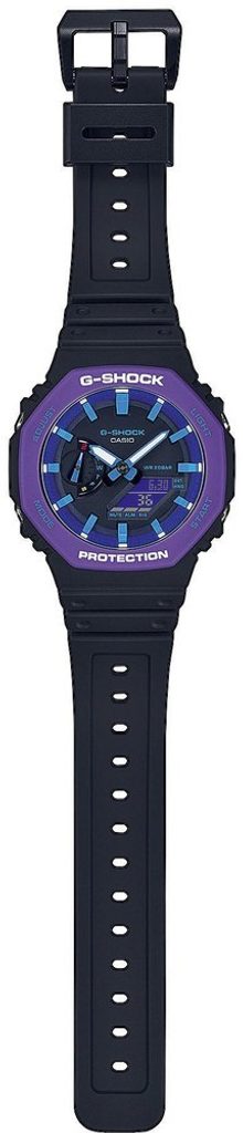 Casio G-Shock GA 2100THS-1A přichází, jak už jsme u řady zvyklí, se zpracováním, díky němuž hodinky obstojí i vystavení ztíženým podmínkám. Vysoká odolnost pouzdra je zajištěna novou konstrukcí Carbon Core Guard. To je vyrobené z pryskyřice, vyztužené a zpevněné uhlíkovými vlákny, speciální je také konstrukce tlačítek, chránící model před průnikem nečistot. Zmíněná kombinace dovoluje vytvořit kompaktnější a lehčí celek.