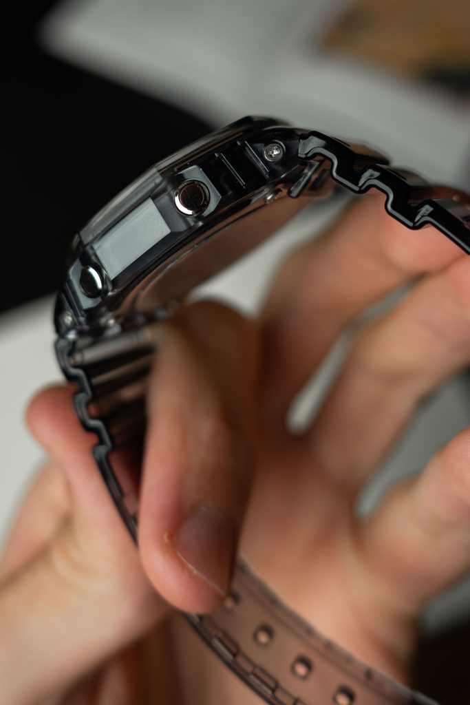 Šedé průhledné pryskyřicové pouzdro hodinek vyztužené uhlíkovými vlákny je doplněno pryskyřicovým řemínkem vynikajícím vysokou odolností a dlouhou životností. Použité materiály pomohly snížit váhu hodinek na pouhých 51 gramů. Číselník chrání minerální sklíčko. Pro snadnou čitelnost při zhoršených světelných podmínkách, jsou hodinky vybaveny ručkami s luminiscenční vrstvou a dvojitým LED osvětlením, které po stisku tlačítka osvětlí jak analogovou část, tak digitální displej. Na pozici deváté hodiny je umístěn subciferník ukazující aktuální den, digitální displej ukazuje nejen zvolený režim, ale také související údaje. Díky průměru pouzdra 45,4 mm se řadí mezi vetší hodinky. Vodotěsnost tohoto modelu je 200 m, s hodinkami tedy můžete bez problémů plavat.