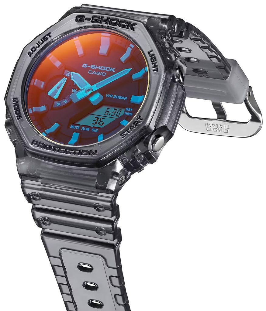 Casio G-Shock GA 2100TLS-8A jsou novou letní sérií, která navazuje na modely Iridescent Color Series. Design je inspirovaný krásou bílých pláží za slunného dne a za soumraku. Na sklíčko hodinek byla depozicí par nanesena barevná škála. Odstíny skla se mění v závislosti na světle. Každé hodinky jsou svým barevným provedením jedinečné.
