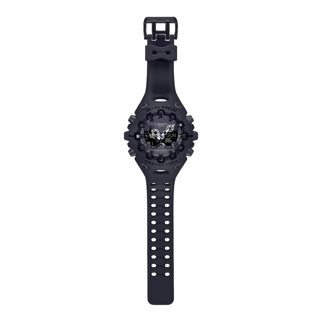 Casio G-Shock GA-V01-1AER jsou novým sportovním modelem rozšiřujícím řadu G-Shock. Model GA-V01 se vyznačuje organickým tvarem s ostře definovanými hranami, v kombinaci s netradičními výřezy pro LCD displej a zmínit je třeba také prořezávané ručky Shock Release Hand. Svým nápadně inovativním a originálním designovým konceptem vyzařuje model GA-V01 odolnost typickou pro G-SHOCK a znovu potvrzuje zaměření značky na výzvy.