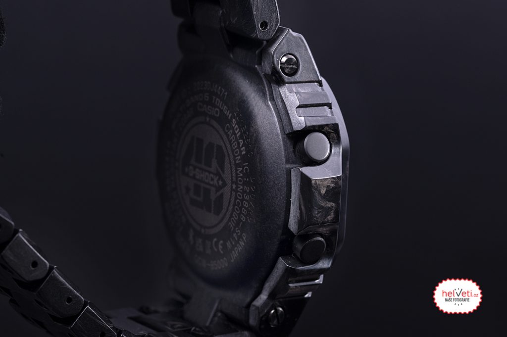 Casio G-Shock GCW-B5000UN-1ER jsou modelem ze stáje Master of G, zpracování, díky němuž hodinky obstojí i v těch nejtěžších podmínkách je pro něj samozřejmé. Celková odolnost je nyní ještě zvýšena díky inovativním řešením a materiálům použitým při výrobě hodinek. Bezel a náramek jsou vyrobeny z lisovaného karbonu, který lze tvarovat do složitých tvarů. Skládací spona je vyrobeno z vícevrstvého karbonu, který se může pochlubit vysokým stupněm pevnosti v podélném ohybu. Monokokové pouzdro je vyrobené z pryskyřice vyztužené uhlíkovými vlákny. Při výrobě byla jednotlivým dílům věnována speciální pozornost a z tohoto důvodu je každý vyroben jinou technikou. Díky správnému výběru materiálů jsou hodinky nejen velmi lehké, ale také odolné a pohodlné. Dalšími přednostmi hodinek jsou také solární pohon a rádiové řízení času.