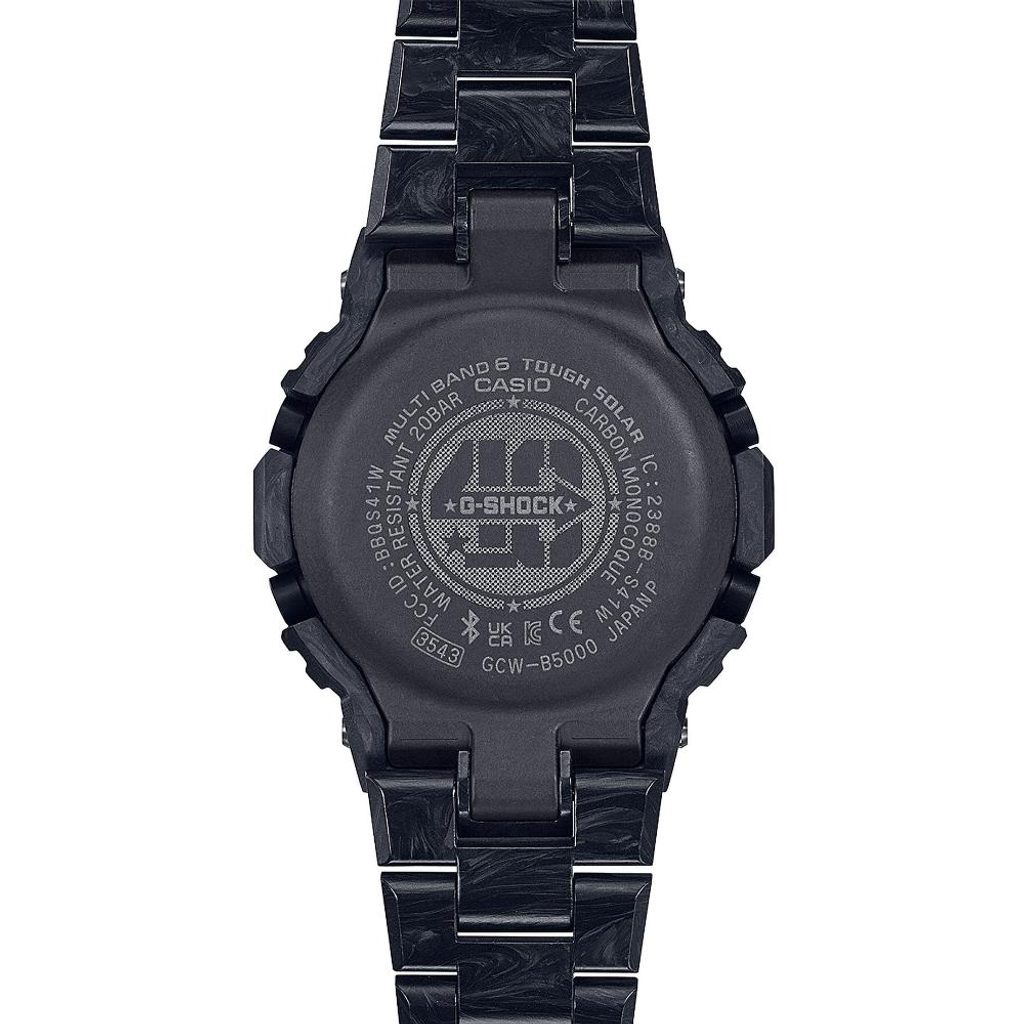 Casio G-Shock GCW-B5000UN-6DR jsou modelem ze stáje Master of G, zpracování, díky němuž hodinky obstojí i v těch nejtěžších podmínkách je pro něj samozřejmé. Celková odolnost je nyní ještě zvýšena díky inovativním řešením a materiálům použitým při výrobě hodinek. Bezel a náramek jsou vyrobeny z lisovaného karbonu, který lze tvarovat do složitých tvarů. Skládací spona je vyrobeno z vícevrstvého karbonu, který se může pochlubit vysokým stupněm pevnosti v podélném ohybu. Monokokové pouzdro je vyrobené z pryskyřice vyztužené uhlíkovými vlákny. Při výrobě byla jednotlivým dílům věnována speciální pozornost a z tohoto důvodu je každý vyroben jinou technikou. Díky správnému výběru materiálů jsou hodinky nejen velmi lehké, ale také odolné a pohodlné. Dalšími přednostmi hodinek jsou také solární pohon a rádiové řízení času.