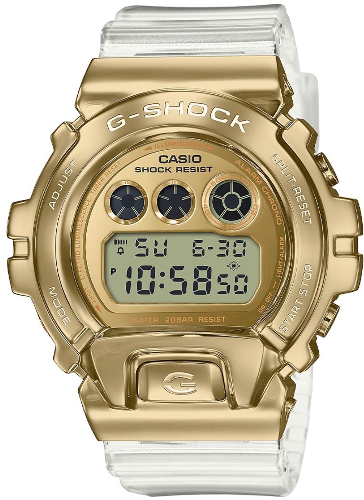 Casio G-Shock GM-6900SG-9ER jsou sportovní hodinky ze série Skeleton Gold Series, pro niž je typické použití zlaté barvy pouzdra a průhledných, či poloprůhledných prvků.