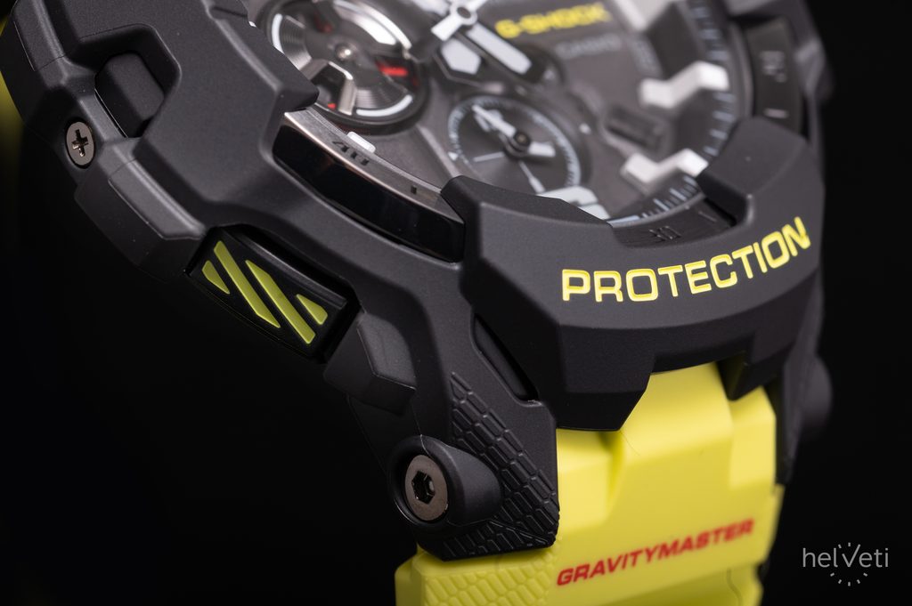 Casio G-Shock Gravitymaster GR B300RY-1A9 přichází, jak už jsme u řady zvyklí, se zpracováním, díky němuž hodinky obstojí i v těch nejtěžších podmínkách. Vynikají odolností proti nárazům, nízkým teplotám a vodě. Vysoká odolnost je zajištěna konstrukcí pouzdra Carbon Core Guard. To je vyrobeno z pryskyřice, vyztužené a zpevněné uhlíkovými vlákny, pro zvýšení odolnosti. Zvolená konstrukce dovoluje vytvořit kompaktnější a lehčí celek.