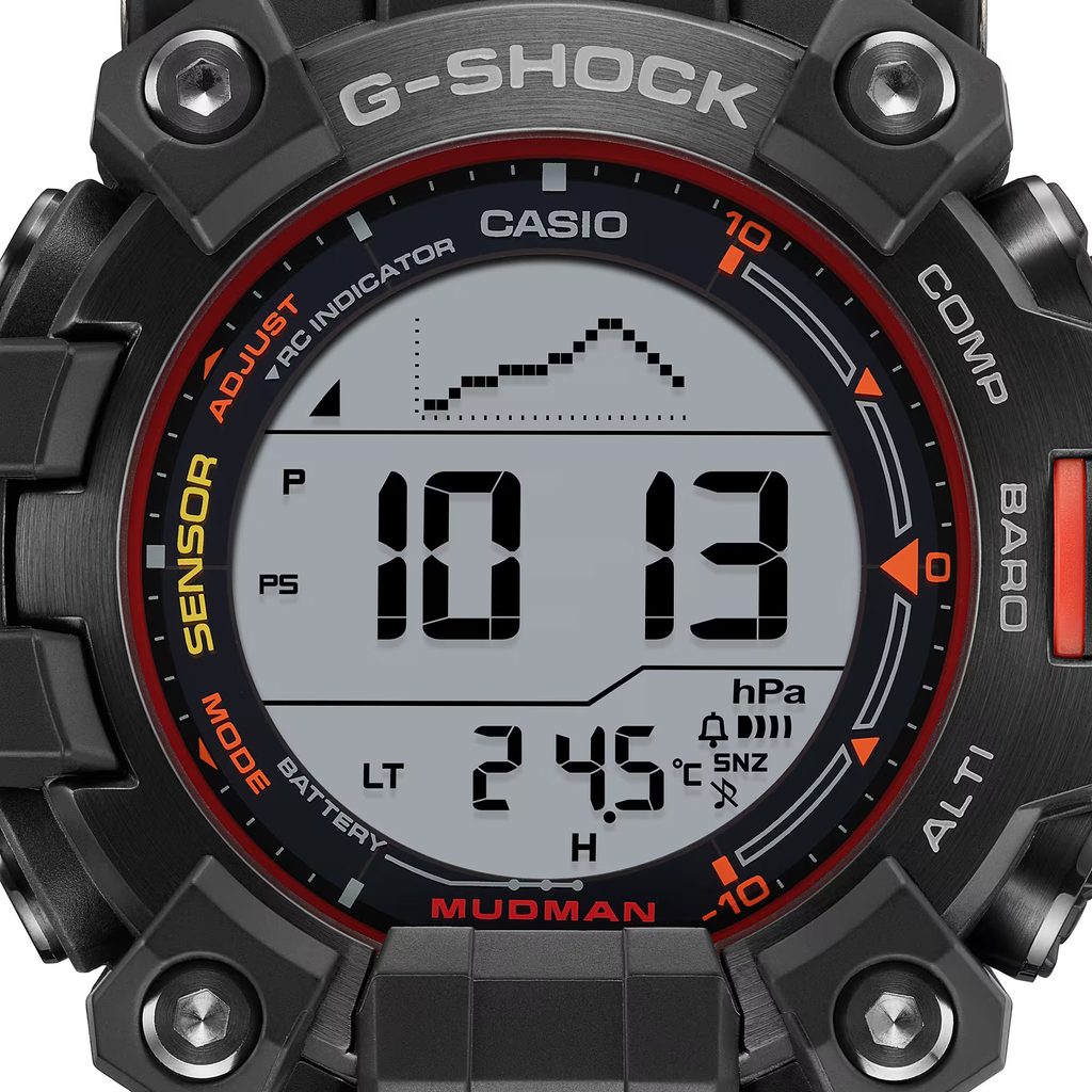 Casio G-Shock Mudman GW 9500MEC-1 mají digitální displej, který zobrazuje datum, den v týdnu, stopky, budík a mnohé další funkce, které využijete zejména v přírodě a mezi něž lze řadit například kompas ukazující magnetický sever, výškoměr s rozsahem –700 až 10,000 m, barometr se schopností záznamu tlaku 260 až 1100 hPa a teploměr měřící ve škále -10 - 60°C, čas východu a západu slunce a další informace spojené s použitím příslušných funkcí.