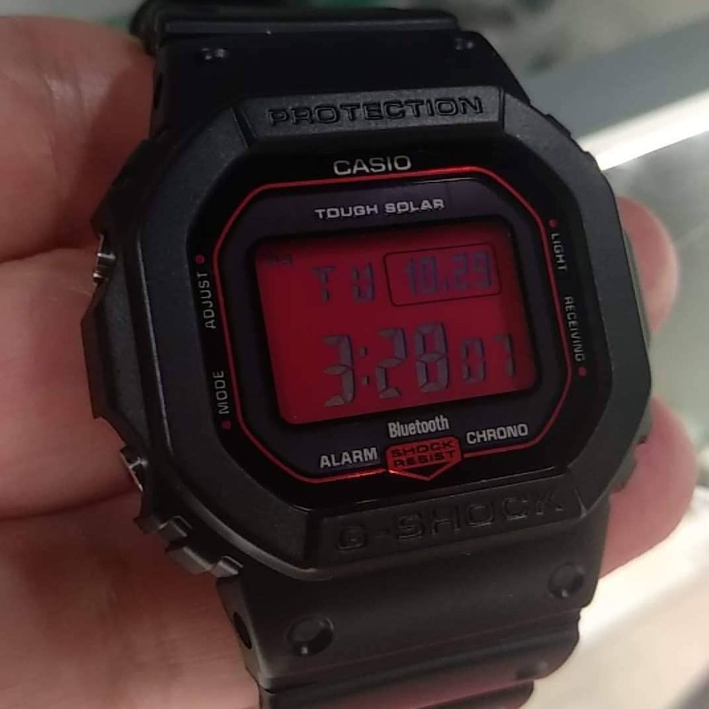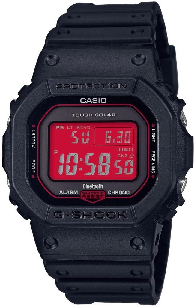 Casio G-Shock GW B5600AR-1 jsou modelem ze série G-Shock Adrenalin Red Series, jež se rozhodla ozvláštnit své modely použitím výrazných barev v podobě odstínů černé a červené. Pro tuto sérii je také typické použití negativního digitálního LCD displeje. Displej zobrazuje datum, den v týdnu, stopky, budík a spoustu dalších funkcí a je chráněn minerálním sklíčkem. Pouzdro hodinek, včetně řemínku, je pryžové. Tento model má solární pohon a rádiové řízení času.