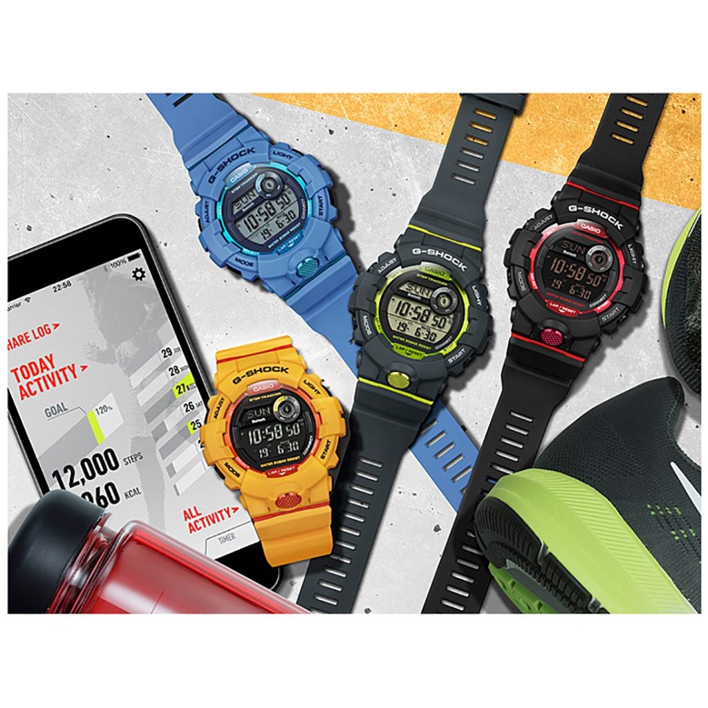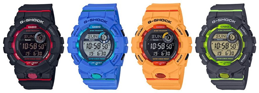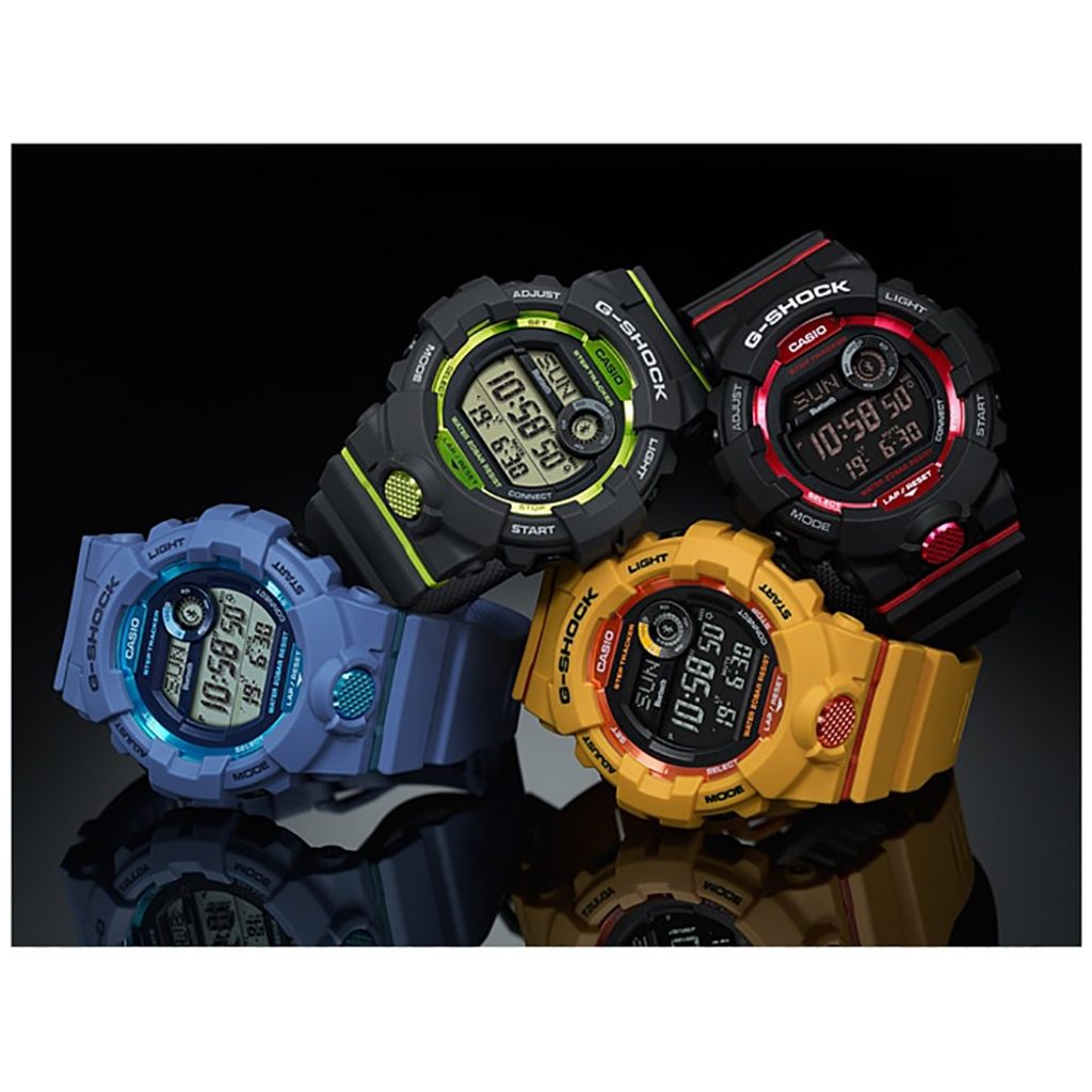 Casio G-Shock G-Squad GBD 800-1 mají digitální ciferník, který zobrazuje datum, den v týdnu, stopky, budík a spoustu dalších funkcí. Novinkou je zabudovaný krokoměr a možnost propojení s telefonem skrze bluetooth, díky čemuž můžete snadno sledovat svou denní aktivitu. Pouzdro hodinek, včetně řemínku, je pryžové. Ciferník chrání minerální sklíčko. Lepší čitelnost při zhoršených světelných podmínkách zajišťuje LED osvětlení displeje. Díky průměru pouzdra 48,6 mm se řadí mezi rozměrově vetší hodinky. Vodotěsnost tohoto modelu je 200M, s hodinkami tedy můžete bez problémů plavat, či se dokonce potápět.