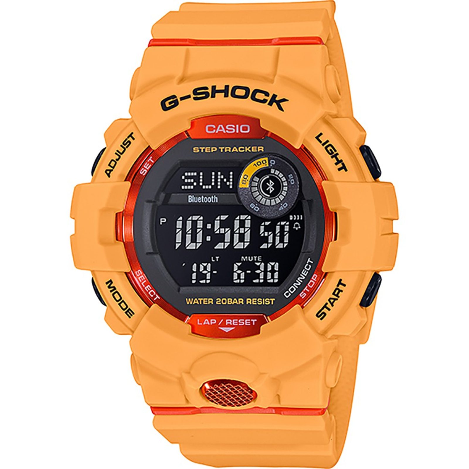 Casio G-Shock G-Squad GBD 800-4 mají digitální ciferník, který zobrazuje datum, den v týdnu, stopky, budík a spoustu dalších funkcí. Novinkou je zabudovaný krokoměr a možnost propojení s telefonem skrze bluetooth, díky čemuž můžete snadno sledovat svou denní aktivitu. Pouzdro hodinek, včetně řemínku, je pryžové. Ciferník chrání minerální sklíčko. Lepší čitelnost při zhoršených světelných podmínkách zajišťuje LED osvětlení displeje. Díky průměru pouzdra 48,6 mm se řadí mezi rozměrově vetší hodinky. Vodotěsnost tohoto modelu je 200M, s hodinkami tedy můžete bez problémů plavat, či se dokonce potápět.