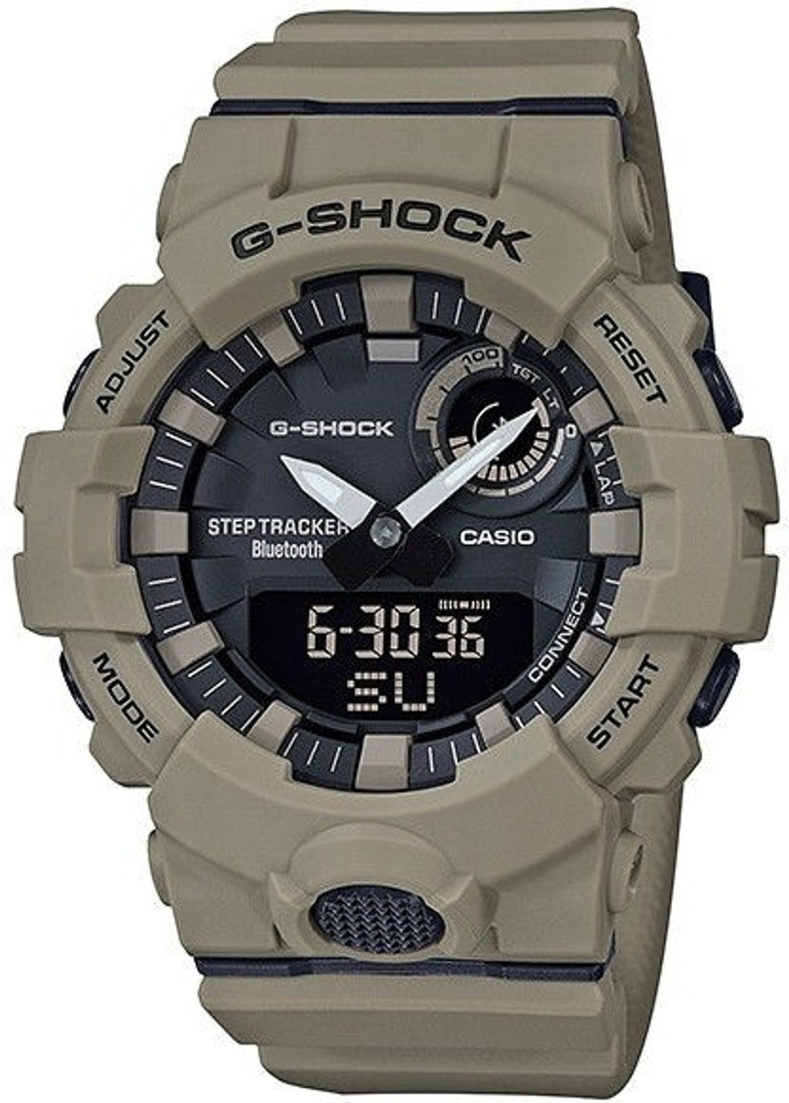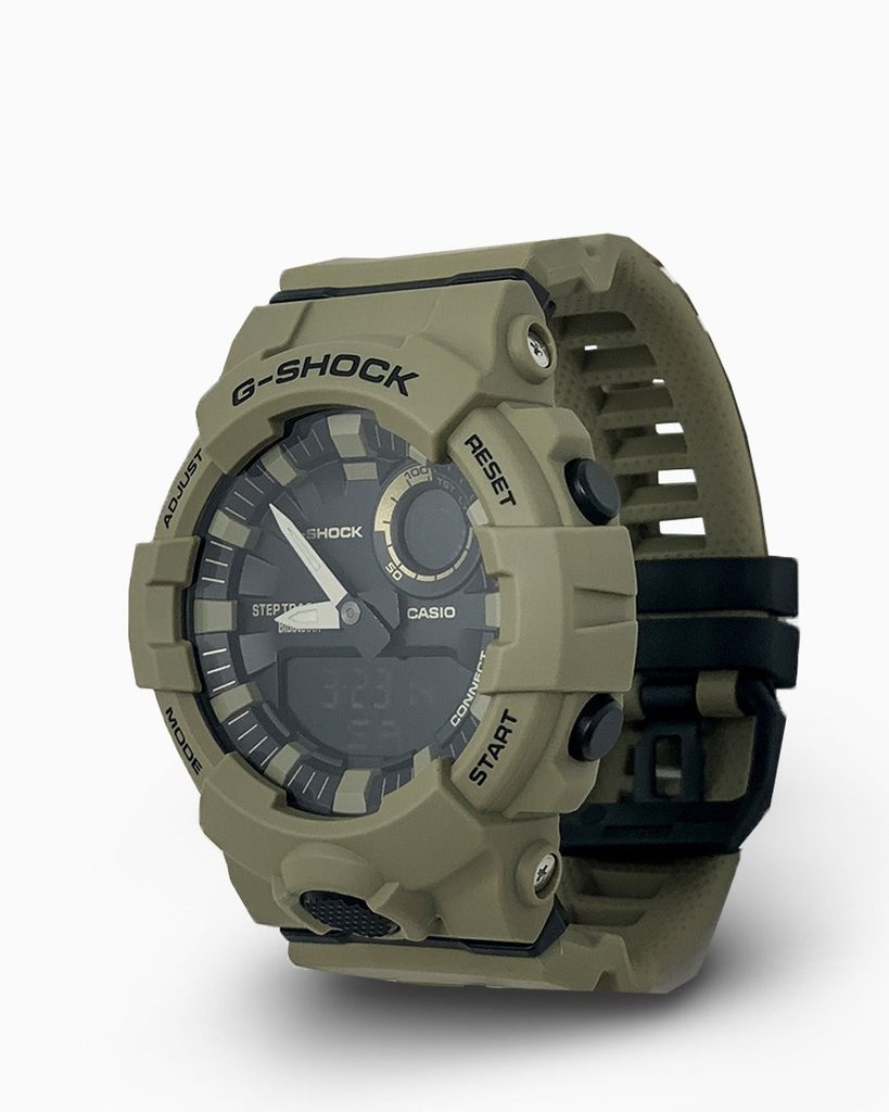 Casio G-Shock GBA 800UC-5A mají kombinovaný ciferník (analogový a digitální), který zobrazuje datum, den v týdnu, stopky, budík a spoustu dalších funkcí. Novinkou je zabudovaný krokoměr a možnost propojení s telefonem skrze bluetooth, díky čemuž můžete snadno sledovat svou denní aktivitu. Pouzdro hodinek, včetně řemínku, je pryžové. Ciferník chrání minerální sklíčko. Lepší čitelnost při zhoršených světelných podmínkách zajišťuje aplikace luminiscenční vrstvy na ručky, vedle toho jsou hodinky vybaveny LED osvětlením displeje. Díky průměru pouzdra 48,6 mm se řadí mezi rozměrově vetší hodinky. Vodotěsnost tohoto modelu je 200M, s hodinkami tedy můžete bez problémů plavat, či se dokonce potápět.