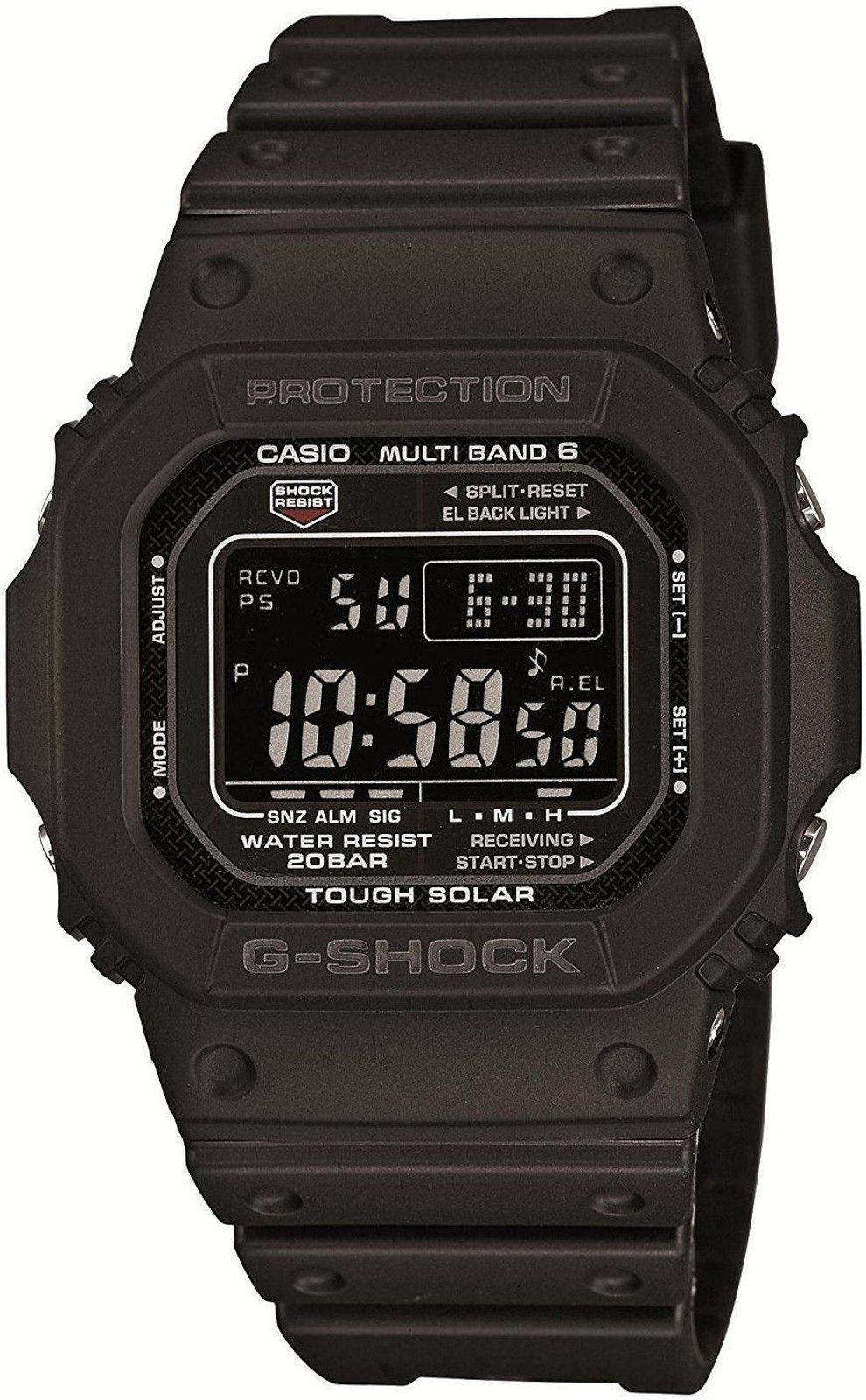 Casio G-Shock GW M5610-1B mají digitální ciferník, který zobrazuje datum, den v týdnu, stopky, budík a spoustu dalších funkcí. Pouzdro hodinek, včetně řemínku, je pryžové. Ciferník chrání minerální sklíčko. Tento model má solárně poháněný a rádiově řízený strojek, zaručující neustálou přesnost chodu a dlouhou životnost akumulátoru. Díky průměru pouzdra 43 mm se řadí mezi rozměrově větší hodinky. Vodotěsnost tohoto modelu je 200 m , s hodinkami tedy můžete bez problémů plavat, či se dokonce potápět.