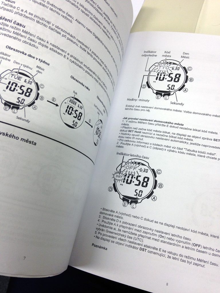 | Další funkce | Solární dobíjení, Teploměr, Výškoměr, Barometr, Indikace východu a západu slunce, Odpočet, Automatický kalendář, Režim 12/24, Světové časy, Tlačítko tónu on/off |
