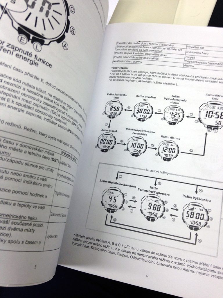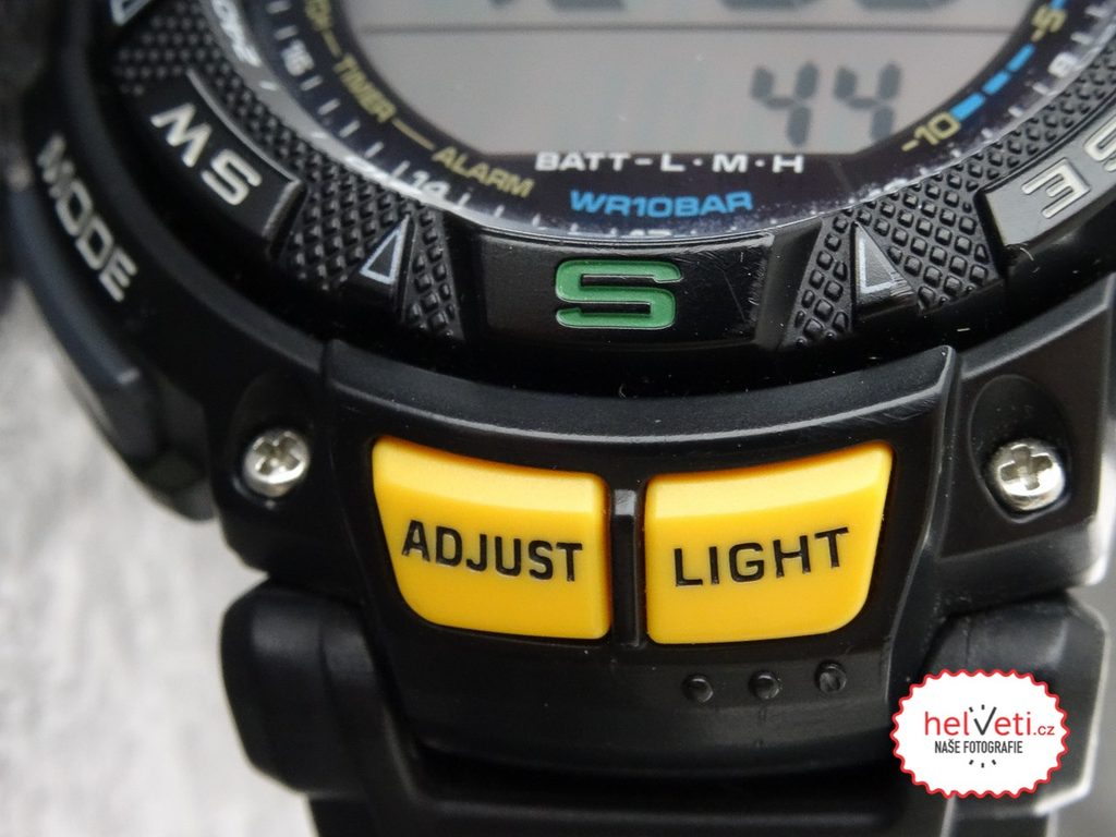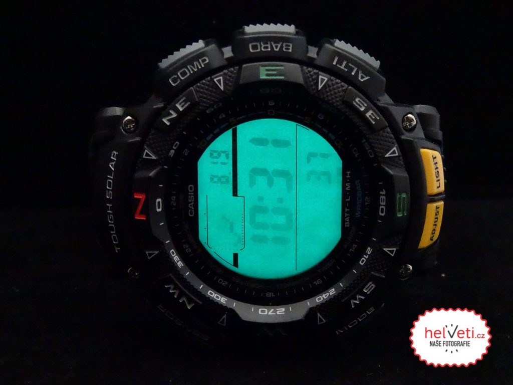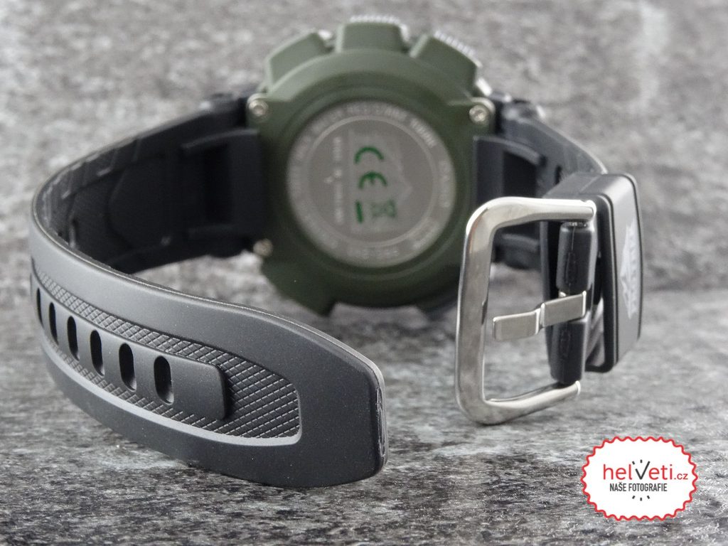 | Funkce | Datum, Den v týdnu, Otočná luneta, Stopky, Kompas, Budík, Podsvícení, Teploměr, Výškoměr, Barometr |
