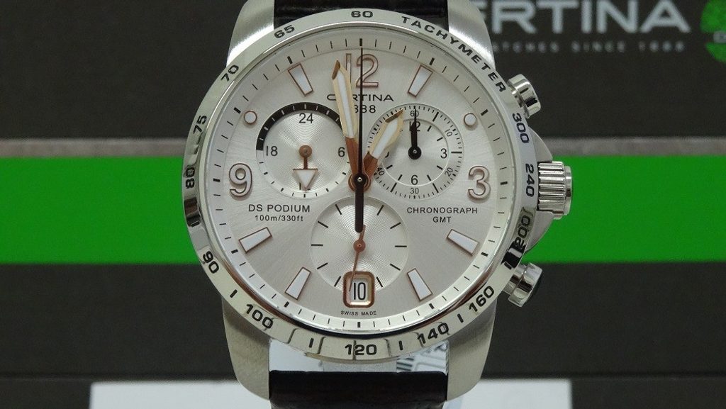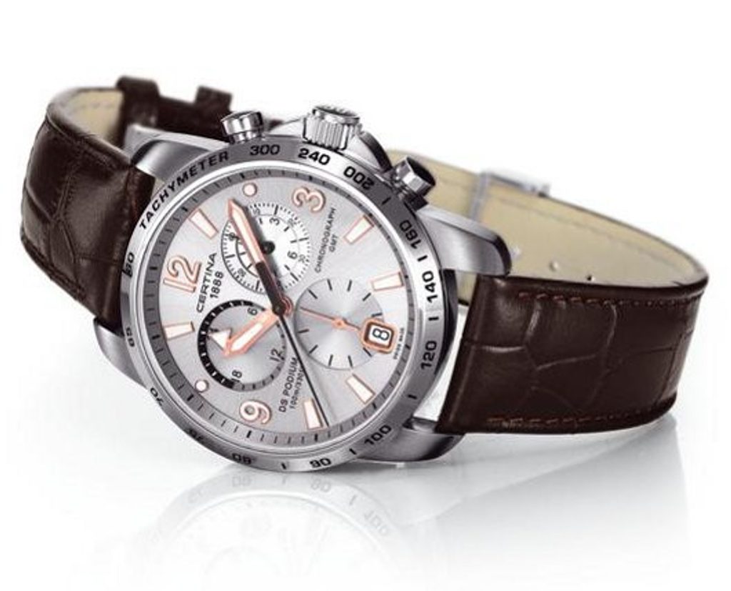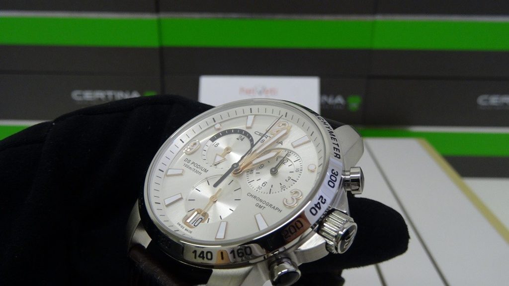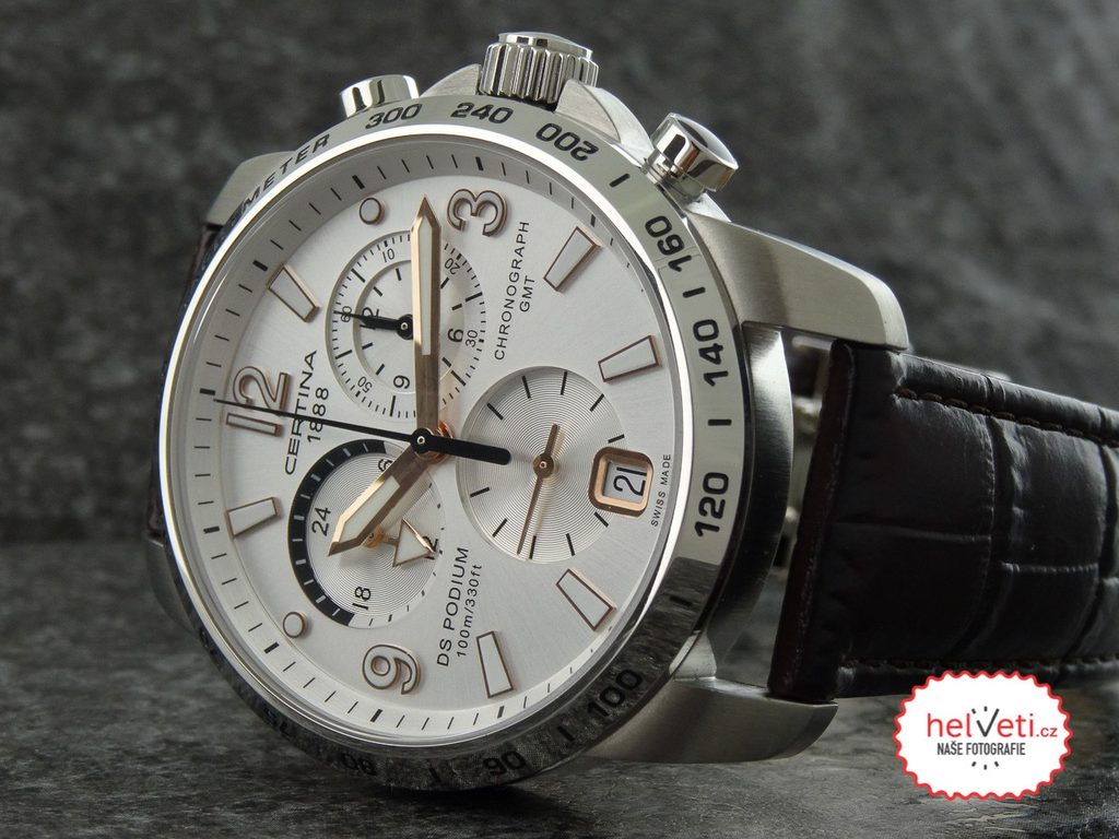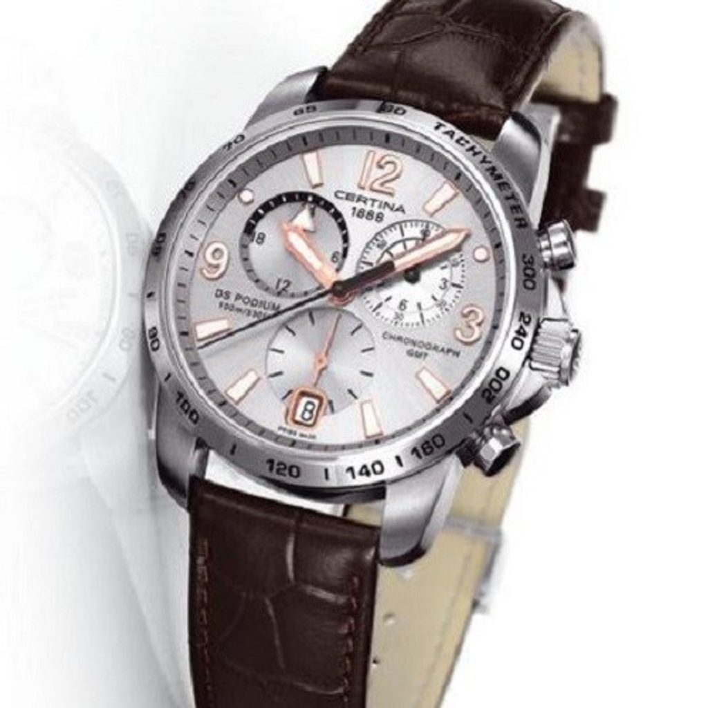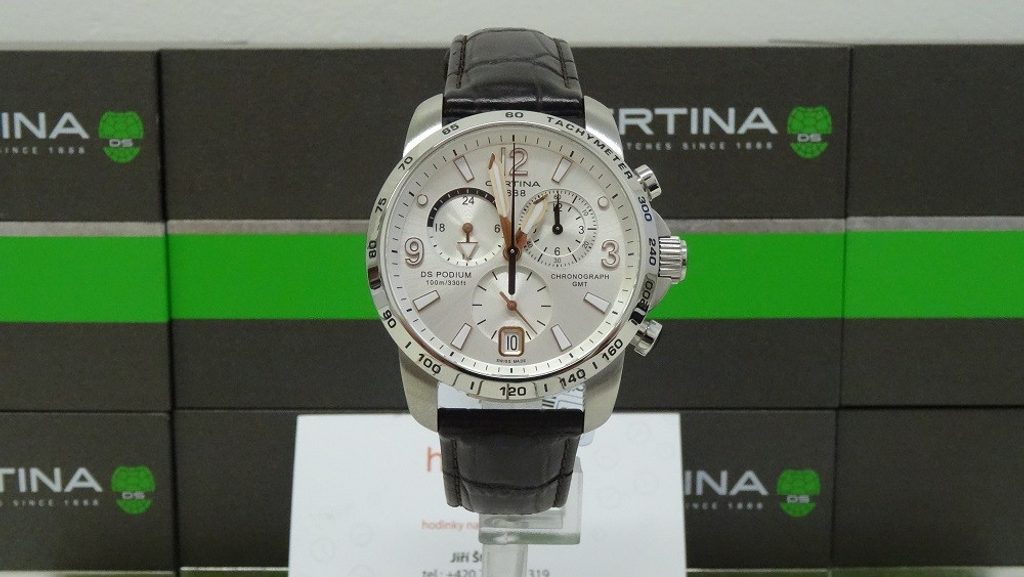 Hodinky Certina C001.639.16.037.01 patřící do modelové řady DS Podium disponují ukazatelem data, stopkami, tachymetrem a ukazatelem druhého světového času - GMT. Detailně propracovaný ciferník chrání safírové sklíčko, jež je odolné vůči jakémukoliv poškrábání. Pouzdro hodinek je vyrobeno z ušlechtilé oceli a řemínek z kvalitní kůže hnědé barvy. Model disponuje vodotěsností 10 ATM - vhodné na běžné koupání.