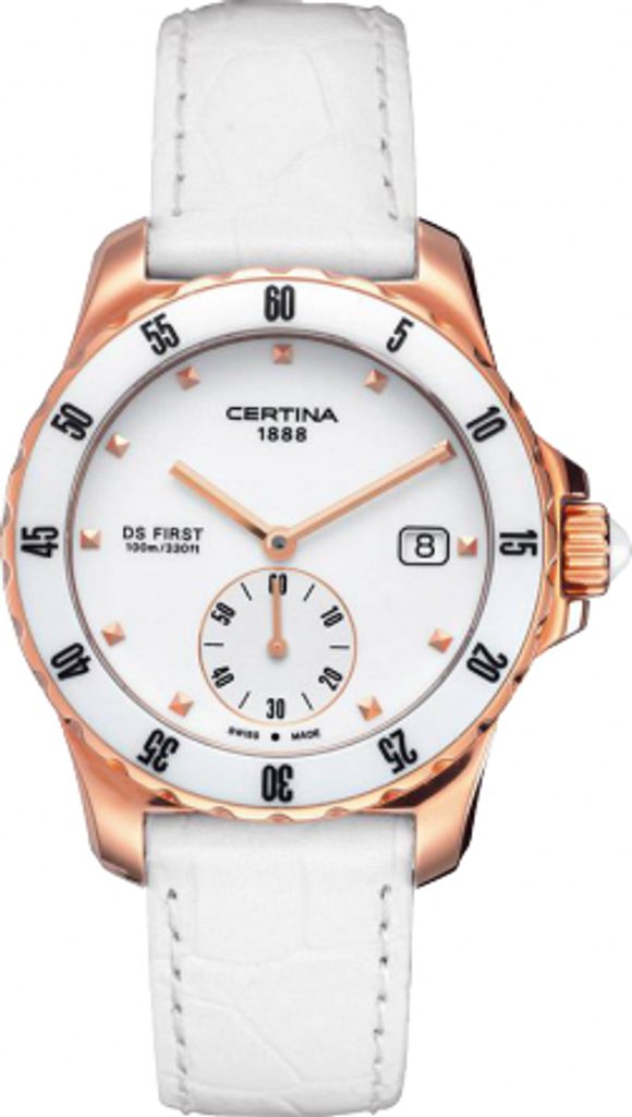 Certina DS First Lady Ceramic C014.235.36.011.00 jsou elegantní dámské hodinky vyvedené v povedené kombinaci bílé a zlaté barvy. Své majitelky si získávají moderním vzhledem, přesností a nízkou váhou.