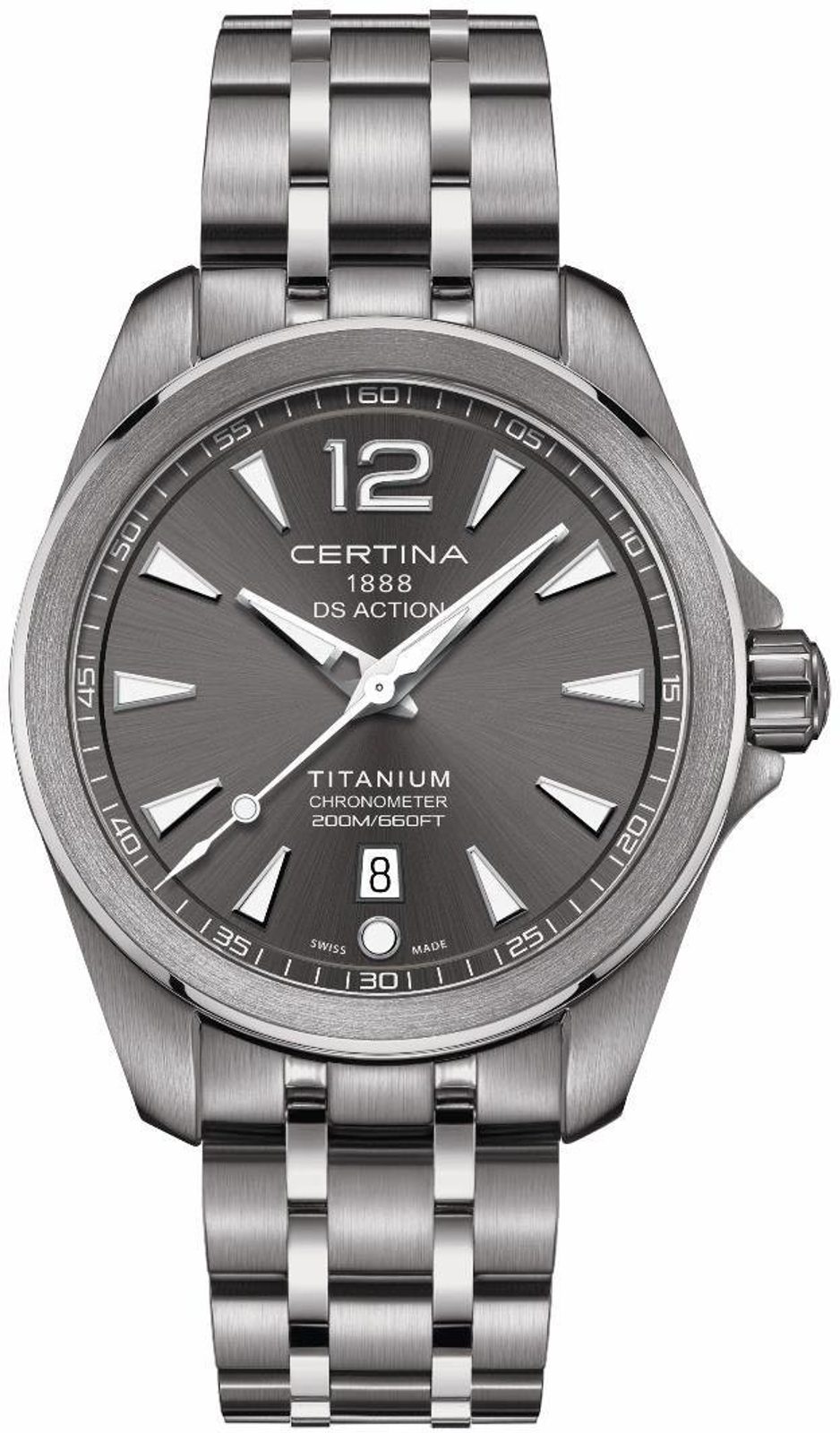 Hodinky Certina C032.851.44.087.00 patřící do modelové řady DS Action disponují ukazatelem data a šroubovací korunkou. Detailně propracovaný ciferník chrání antireflexní safírové sklíčko, jenž je odolné vůči jakémukoliv poškrábání a díky antireflexní vrstvě je ciferník čitelný i za ostrého slunce. Pouzdro hodinek je včetně tahu vyrobeno z titanu. Vodotěsnost tohoto modelu je 20 ATM a je tak vhodný k plavání či hlubinnému potápění.