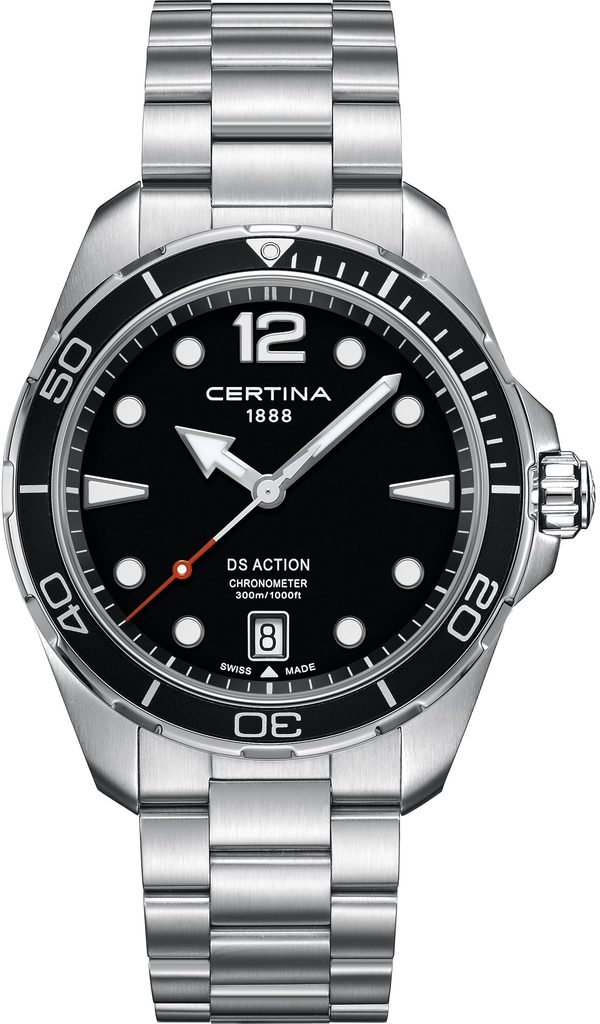 Hodinky Certina C032.451.11.057.00 patřící do modelové řady DS Action disponují ukazatelem data a jednosměrně otočnou lunetou. Detailně propracovaný číselník chrání antireflexní safírové sklíčko, jež je odolné vůči jakémukoliv poškrábání a díky antireflexní vrstvě je číselník čitelný i za ostrého slunce. Pouzdro hodinek je vyrobeno z ušlechtilé oceli. Hodinky drží na ruce díky kvalitně zpracovanému ocelovému náramku s potápěčskou extenzí.
