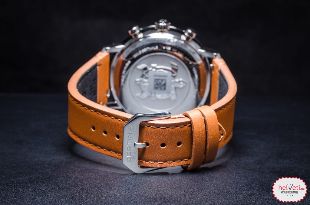 Hodinky Certina C035.417.16.037.01 patřící do modelové řady DS Caimano disponují ukazatelem data na pozici 6 hodiny. Hodinky nabízí užitečnou funkci stopek s možností měření do 30 minut. Detailně propracovaný ciferník chrání safírové sklíčko, jež je odolné vůči jakémukoliv poškrábání. Díky antireflexní vrstvě nebude problém s odečítáním času ani na přímém slunci. Pouzdro hodinek je vyrobeno z leštěné, nerezové oceli 316L. Model disponuje vodotěsností 100M - vhodné na běžné koupání a plavání. Ručičky a body na ciferníku jsou vybaveny luminiscenční vrstvou Super-LumiNova®, nemusíte mít tedy strach, že by za horších podmínek viditelnosti nebyl číselník dobře čitelný. Na ruce hodinky drží kvalitní hnědý kožený pásek.