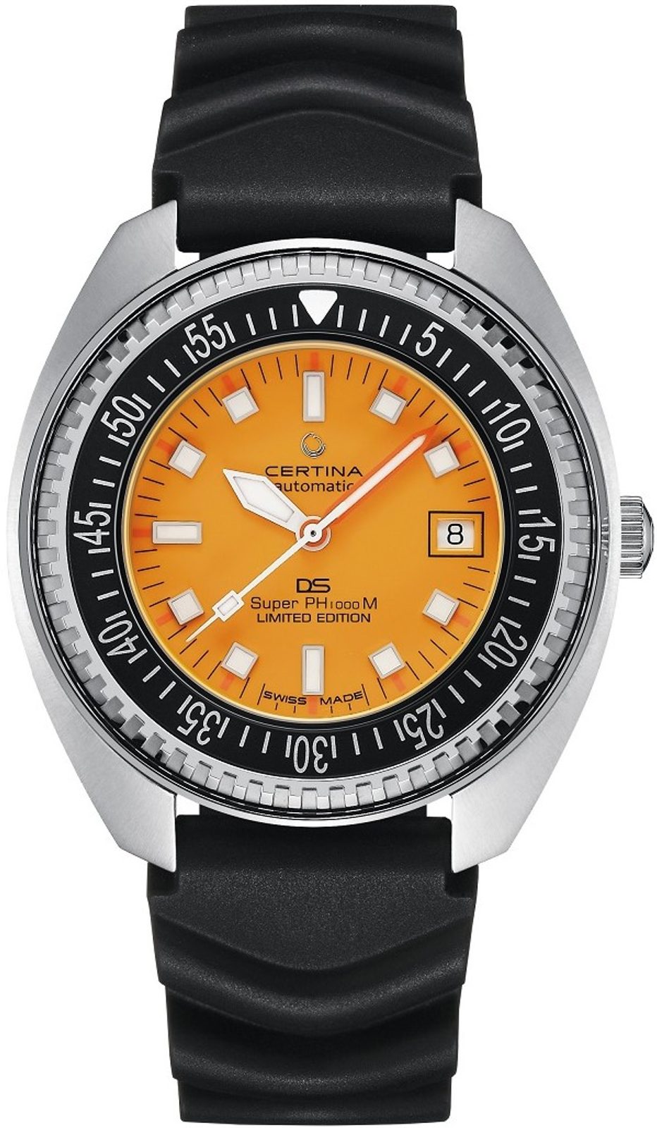 Novinka jménem Certina DS PH1000M Limited Edition C024.907.17.281.10 jistě zaujme díky svému retro stylu a oranžové ciferníku. Skvělou novinkou je vlásek z antimagnetického materiálu - NivachronTM. Voděodolnost hodinek je až 1000 m, což činí z tohoto potápěčského modelu ideálním společníkem na každé cestě - dokonce i pod vodou.