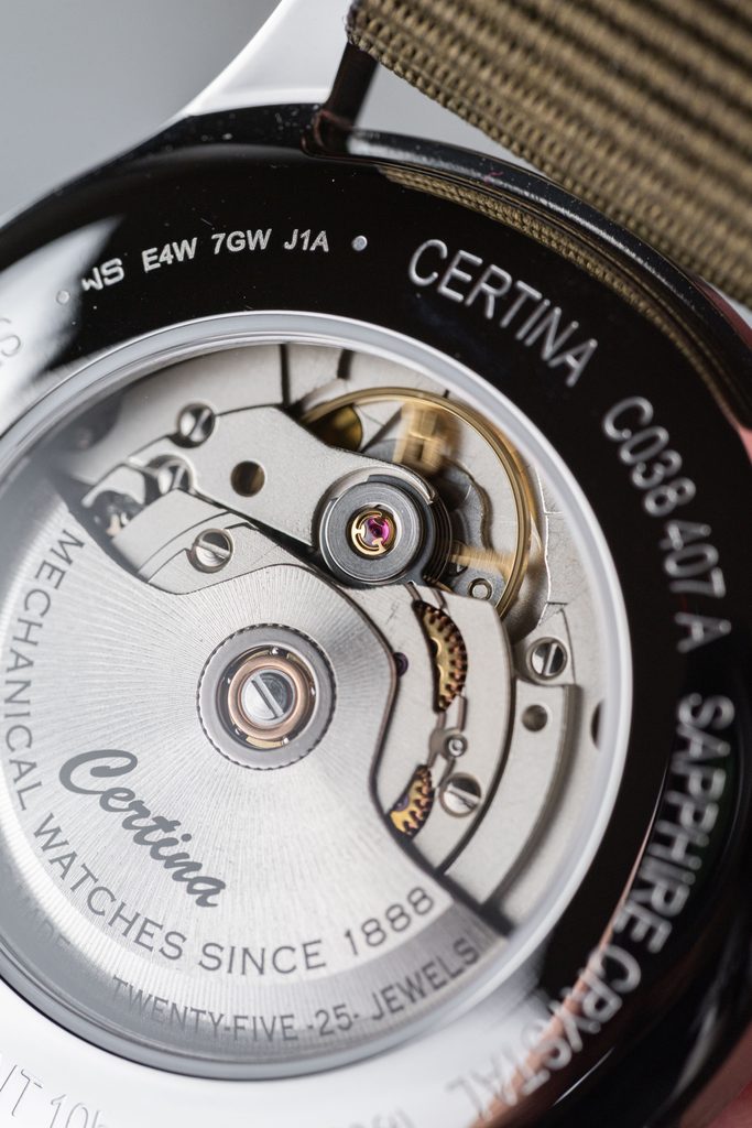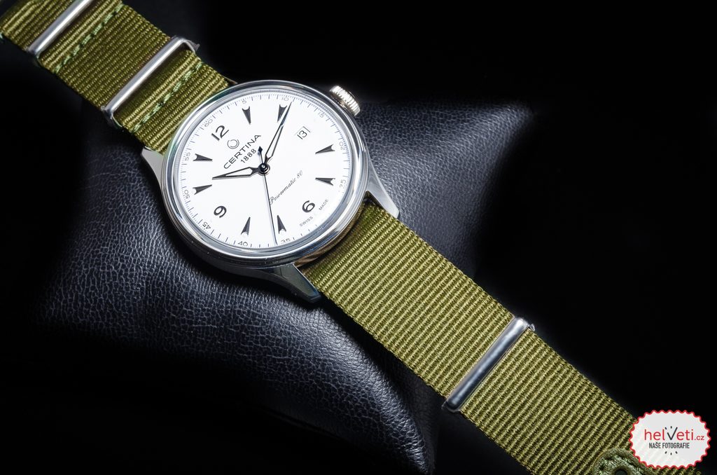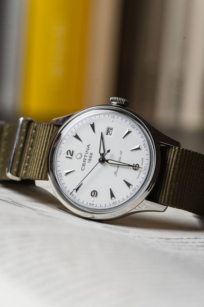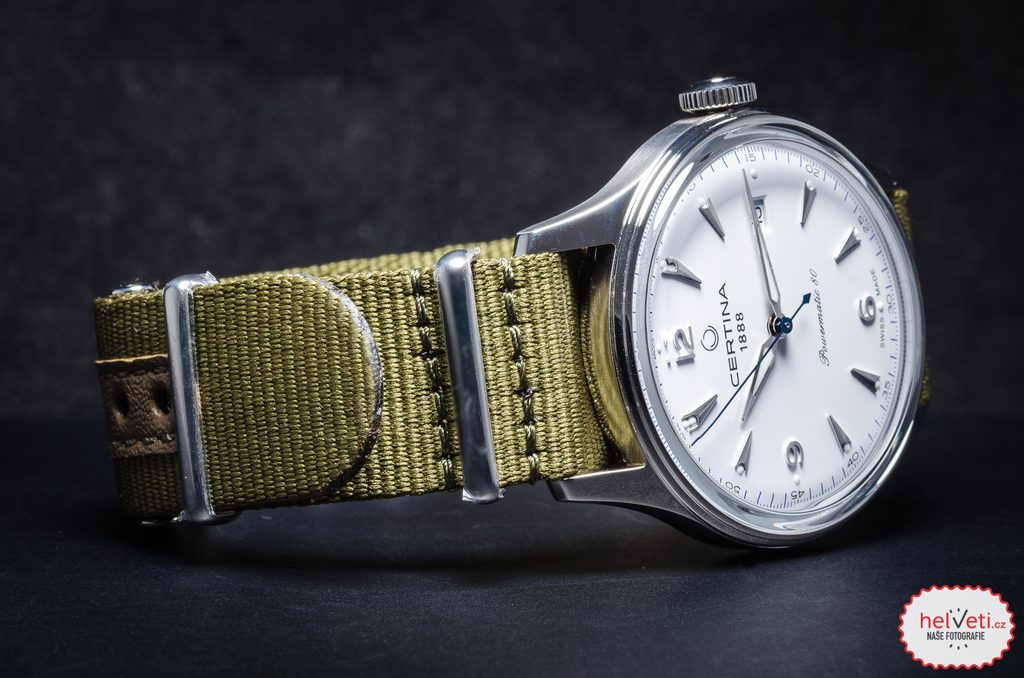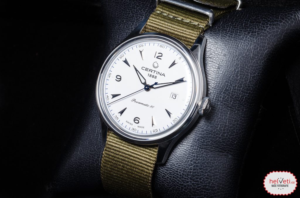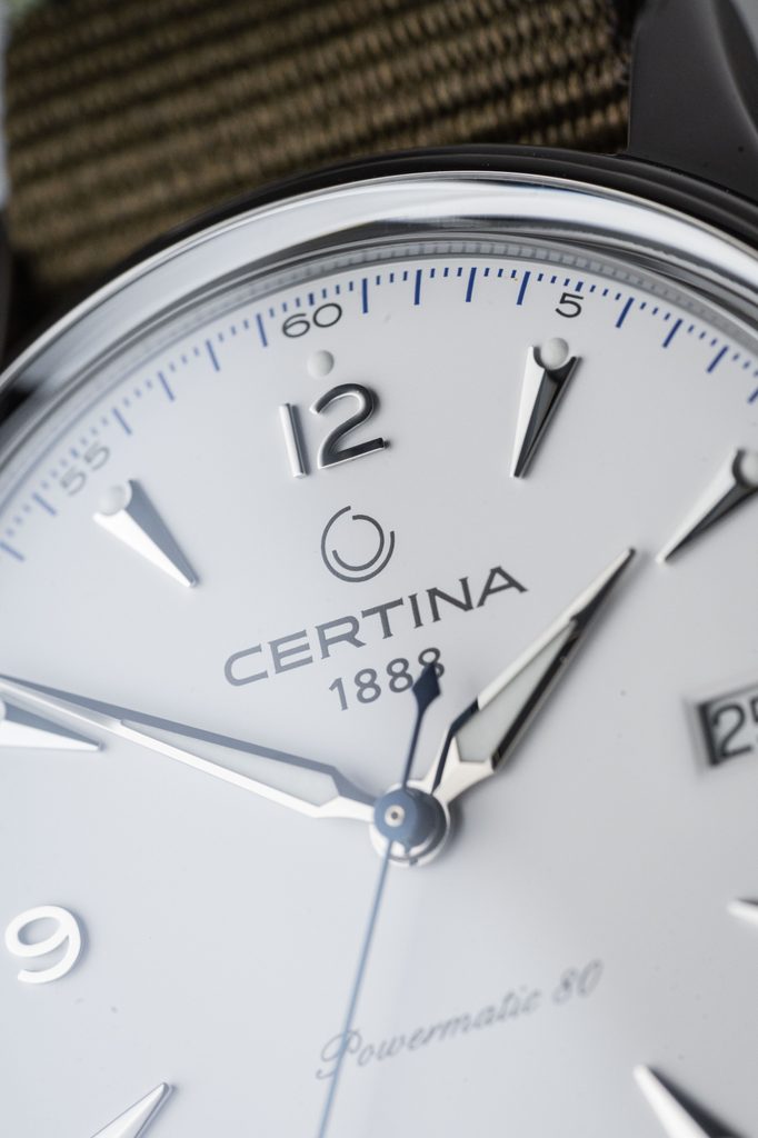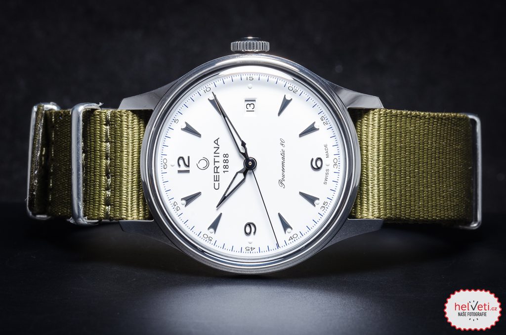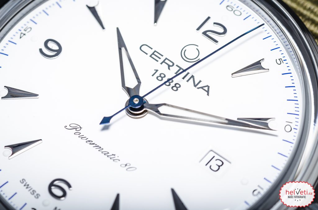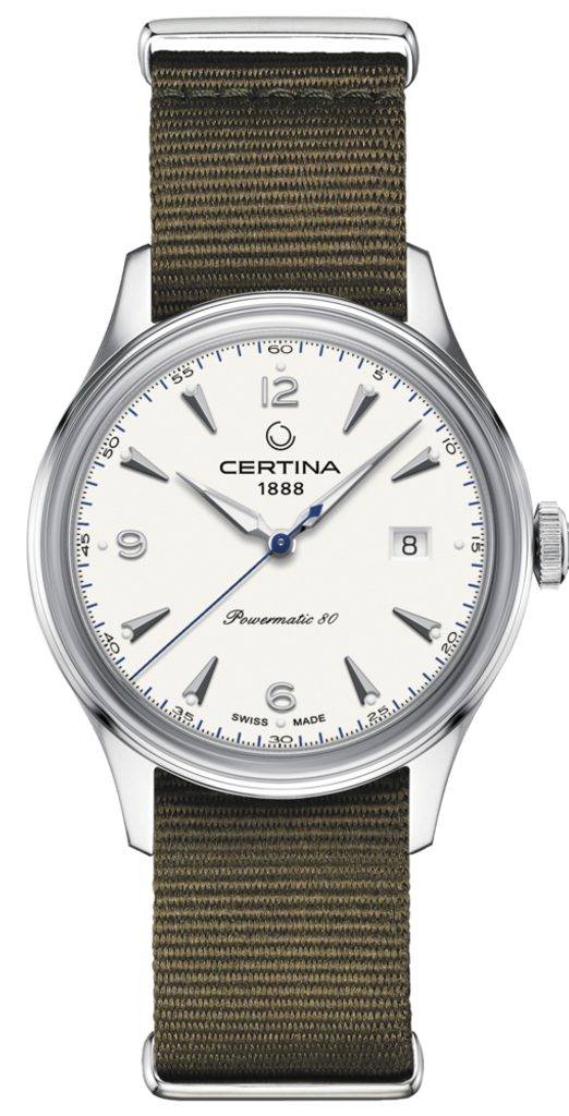 Hodinky Certina C038.407.18.037.00 jsou novinkou pro rok 2021 a inspiraci si berou z modelu Certina DS Chronograph Automatic C038.462.16.037.00. Podobnost najdeme hlavně na číselníku bílé barvy, kde jsou použity stejné indexy a číslice. Jeho detailní provedení vyniká jednoduchostí a přehledností. Ty "naruší" pouze datum, které najdeme na pozici třetí hodiny. Číselník chrání safírové sklíčko, které je odolné vůči poškrábání. Sklíčko je z jedné strany opatřeno antireflexní vrstvou, která umožňuje bezproblémové odečítání času i na přímém slunci. Pouzdro hodinek je vyrobeno z ušlechtilé oceli a na ruce jej drží textilní NATO pásek. Vodotěsnost hodinek je 100m a jsou tak vhodné k plavání a šnorchlování.