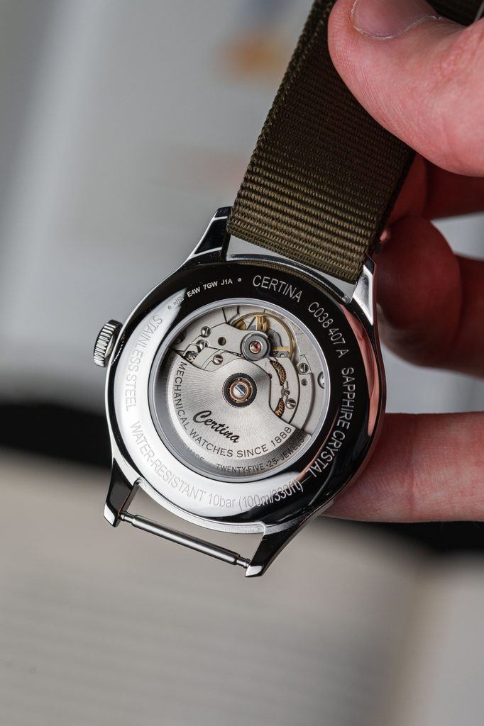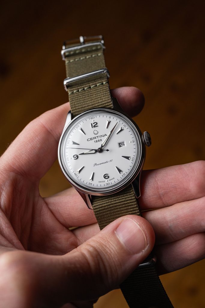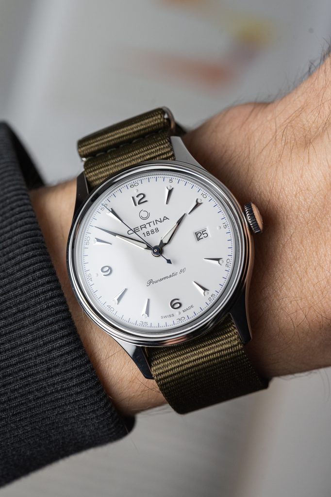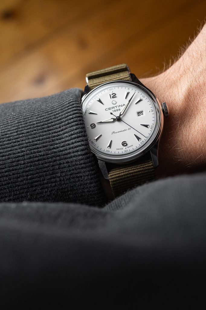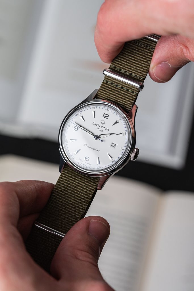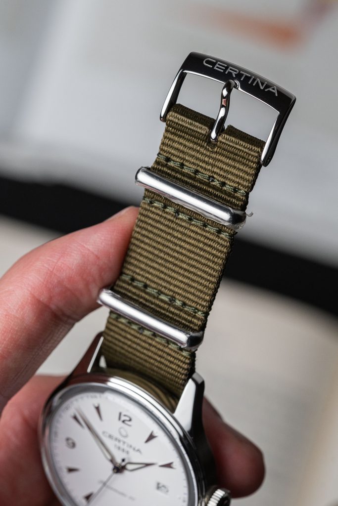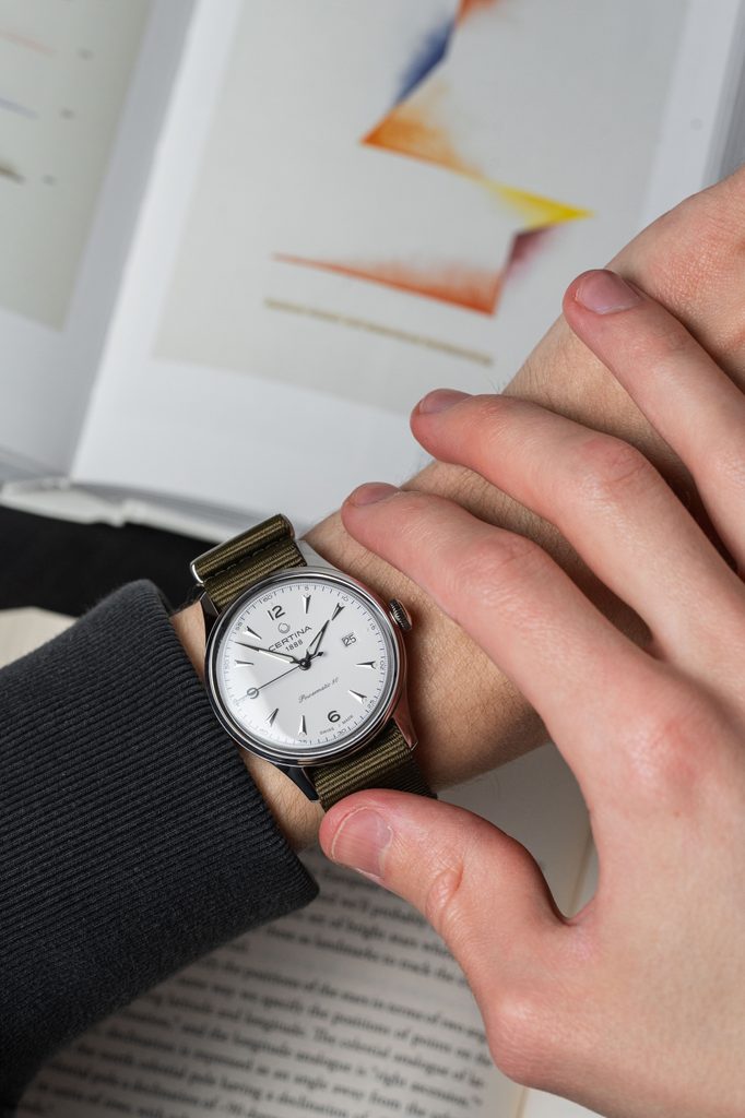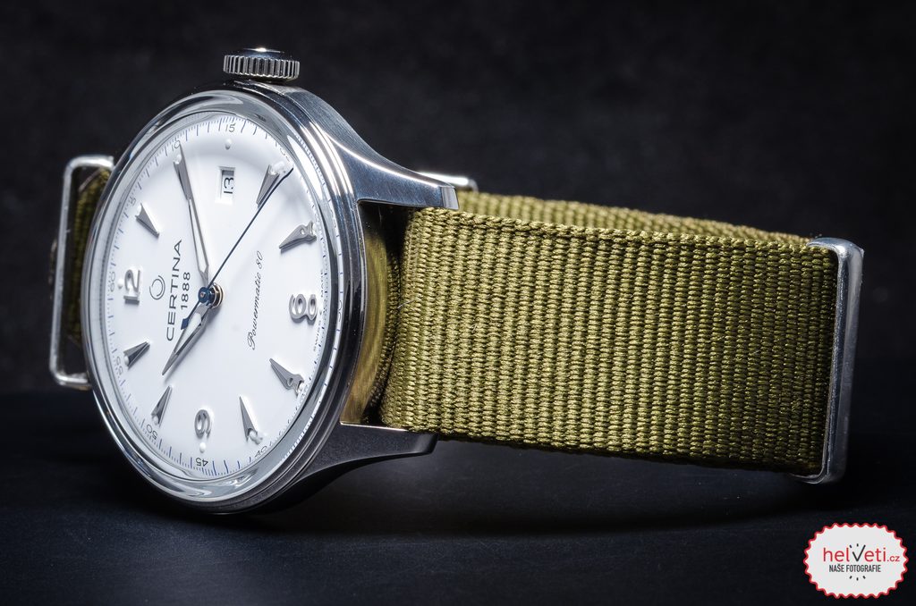 Hodinky Certina C038.407.18.037.00 jsou novinkou pro rok 2021 a inspiraci si berou z modelu Certina DS Chronograph Automatic C038.462.16.037.00. Podobnost najdeme hlavně na číselníku bílé barvy, kde jsou použity stejné indexy a číslice. Jeho detailní provedení vyniká jednoduchostí a přehledností. Ty "naruší" pouze datum, které najdeme na pozici třetí hodiny. Číselník chrání safírové sklíčko, které je odolné vůči poškrábání. Sklíčko je z jedné strany opatřeno antireflexní vrstvou, která umožňuje bezproblémové odečítání času i na přímém slunci. Pouzdro hodinek je vyrobeno z ušlechtilé oceli a na ruce jej drží textilní NATO pásek. Vodotěsnost hodinek je 100m a jsou tak vhodné k plavání a šnorchlování.