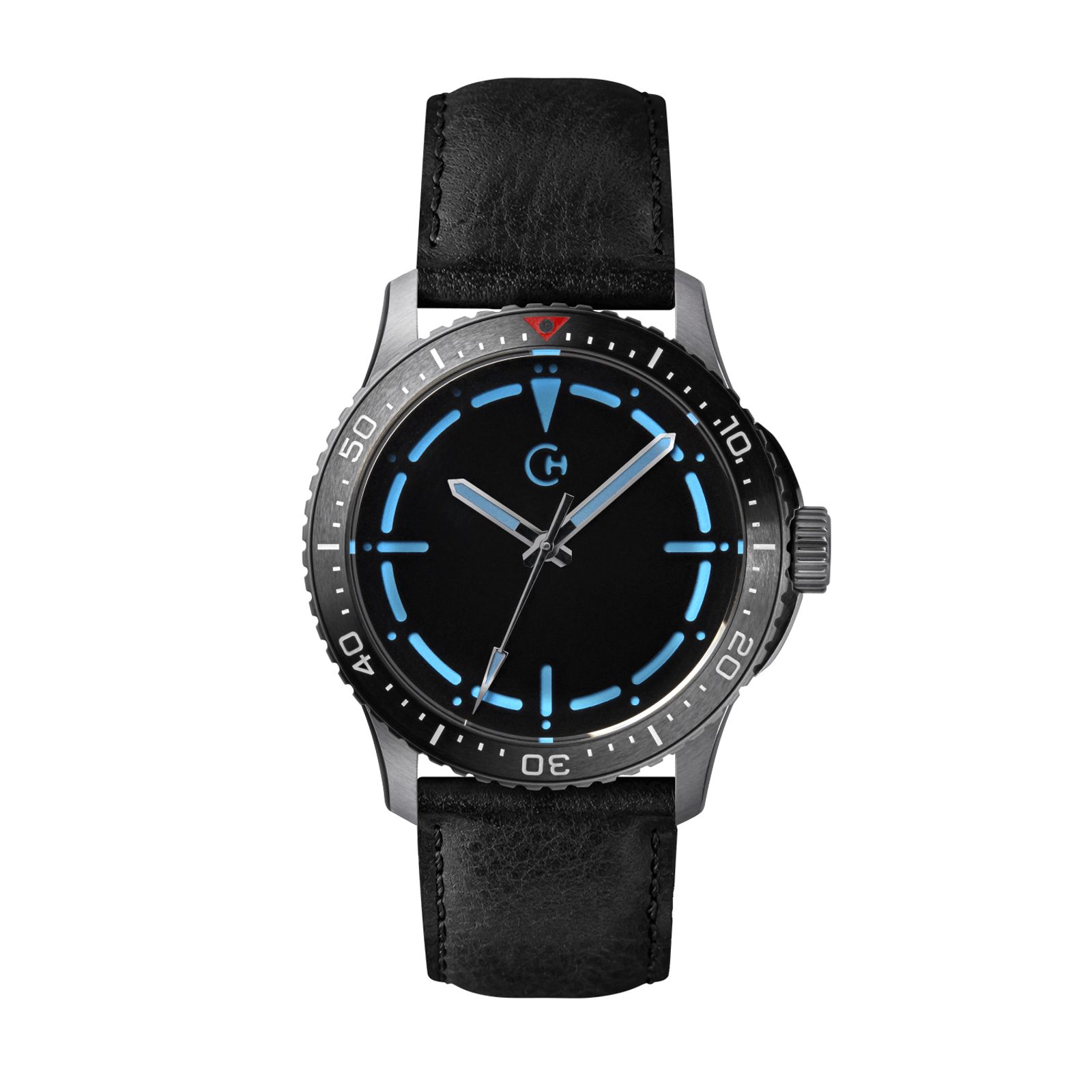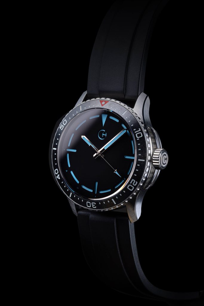 Konkrétně tento model má stříbrné provedení pouzdra a dovětek Blue, který odkazuje na provedení ciferníku (modré ručky, indexy). Ocelové pouzdro (316L) v sobě ukrývá temně černý ciferník, tmavé ručky a celkový dojem je tak velmi nenápadný. Luneta je potápěčská jednosměrně otočná s keramickou vložkou.
