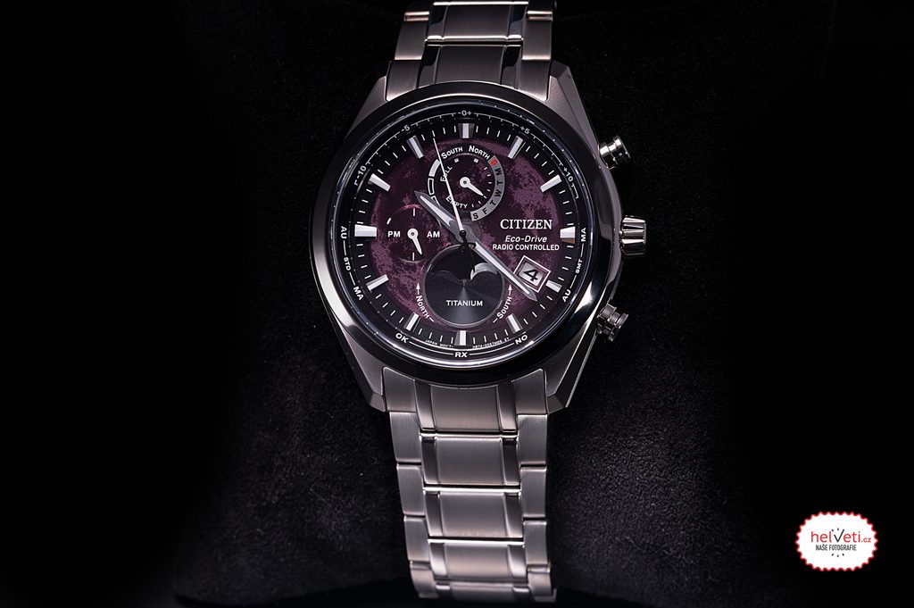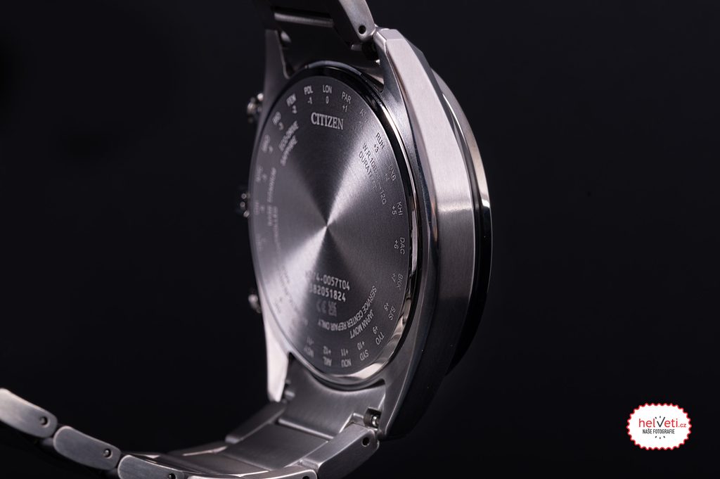 Pouzdro včetně náramku hodinek Citizen BY1018-80X je vyrobeno z titanu Super Titanium™, což zajišťuje nízkou hmotnost a naprostou antialergičnost. Uvnitř tohoto pouzdra pracuje strojek Citizen H874, který nabízí naprosto přesný čas díky systému Radio-Controlled, tedy synchronizaci času pomocí rádiového signálu. Spolehnout se lze i na další funkce, jako indikace stavu nabití baterie, zabránění nadměrnému nabití, varování při nedostatečném nabití dvouvteřinovými skoky vteřinové ručky, nebo přechod do režimu úspory energie. Využít lze též funkci ukazatele měsíční fáze na pozici šesté hodiny, který je korigován automaticky. Možné je také přepnutí ukazatele měsíční fáze podle toho, jestli se nacházíte na jižní, nebo severní polokouli. K dispozici je také 24 hodinový subčíselník na pozici 9 hodiny. Velmi praktický je ukazatel data a dne v týdnu.