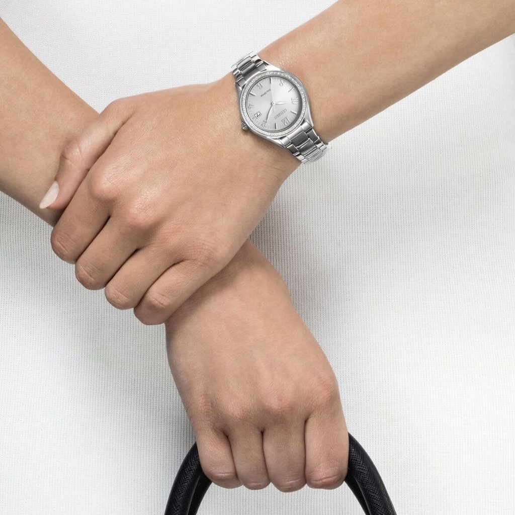 Hodinky Citizen L EO1180-82A mají pouzdro včetně náramku vyrobené z ušlechtilé oceli. Uvnitř pouzdra spolehlivě pracuje in-house strojek Citizen E111, který disponuje světlem dobíjeným akumulátorem s rezervou chodu až 6 měsíců a disponuje též funkcí indikátoru vybití akumulátoru. Zdobení lunety kamínky příjemně dotváří jemný design hodinek.