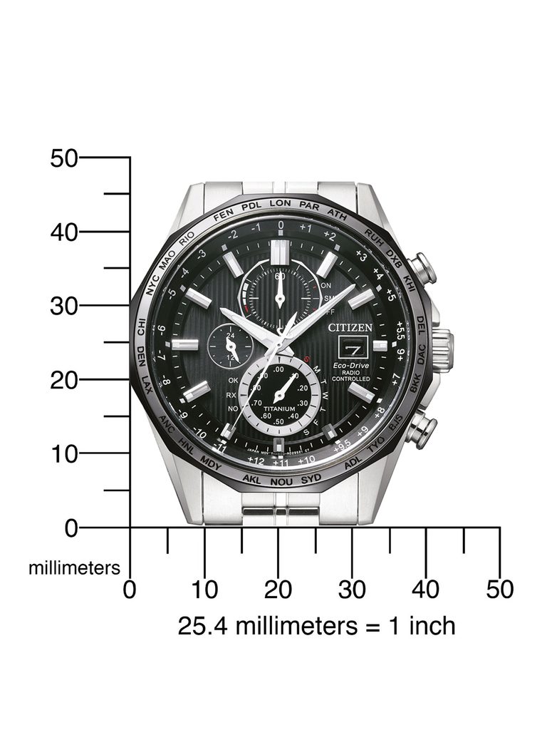 Pouzdro včetně náramku hodinek Citizen AT8218-81E je vyrobeno z titanu Super Titanium™ (Duratect TIC s černou úpravou lunety), což zajišťuje nízkou hmotnost a naprostou antialergičnost. Uvnitř tohoto pouzdra pracuje strojek Citizen H800, který nabízí naprosto přesný čas díky systému Radio-Controlled, tedy synchronizaci času pomocí rádiového signálu. Spolehnout se lze i na další funkce, jako indikace stavu nabití baterie, zabránění nadměrnému nabití, varování při nedostatečném nabití dvouvteřinovými skoky vteřinové ručky, nebo přechod do režimu úspory energie. Využít lze též funkci stopek s přesností 1/20 s, nebo 24 hodinový subčíselník na pozici 9 hodiny. Velmi praktický je ukazatel data a dne v týdnu.