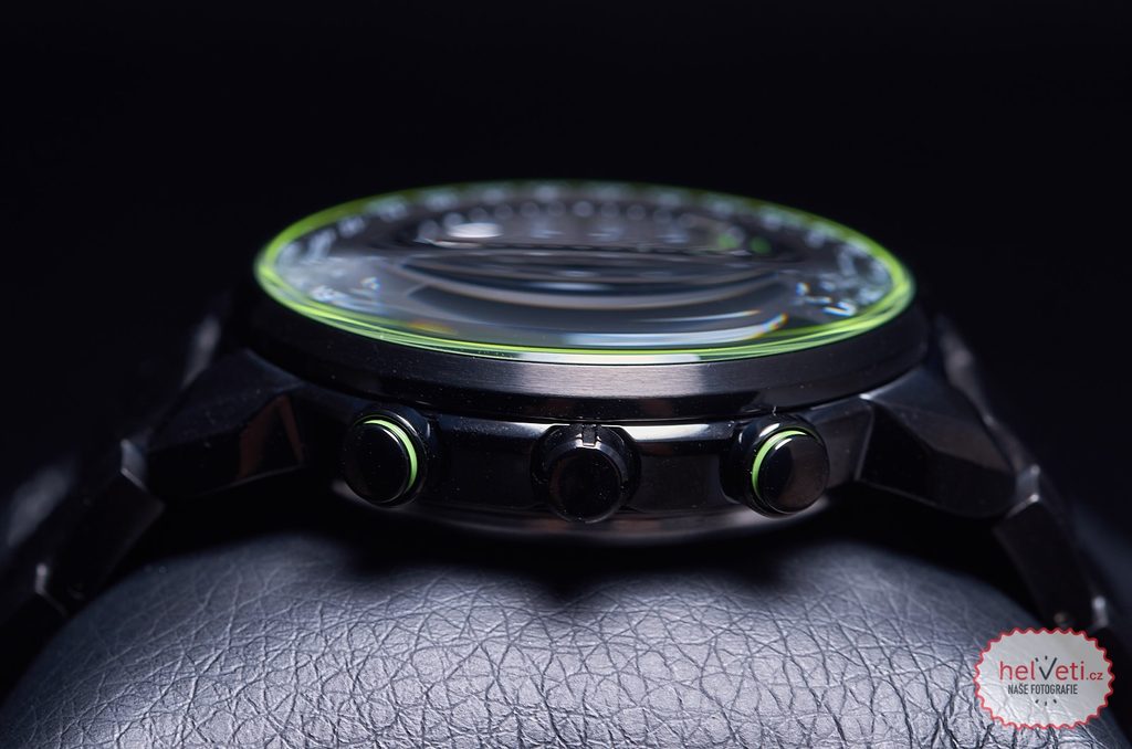Strukturovaný číselník, na nemž vynikají zejména zelené prvky, je chráněn minerálním sklíčkem. Voděodolnost tohoto modelu je 100 m, bez problému tedy zvládne kontakt s vodou včetně plavání či drobného ponoru. Lepší čitelnost za zhoršených světelných podmínek zajišťuje luminiscence aplikovaná na ručky.