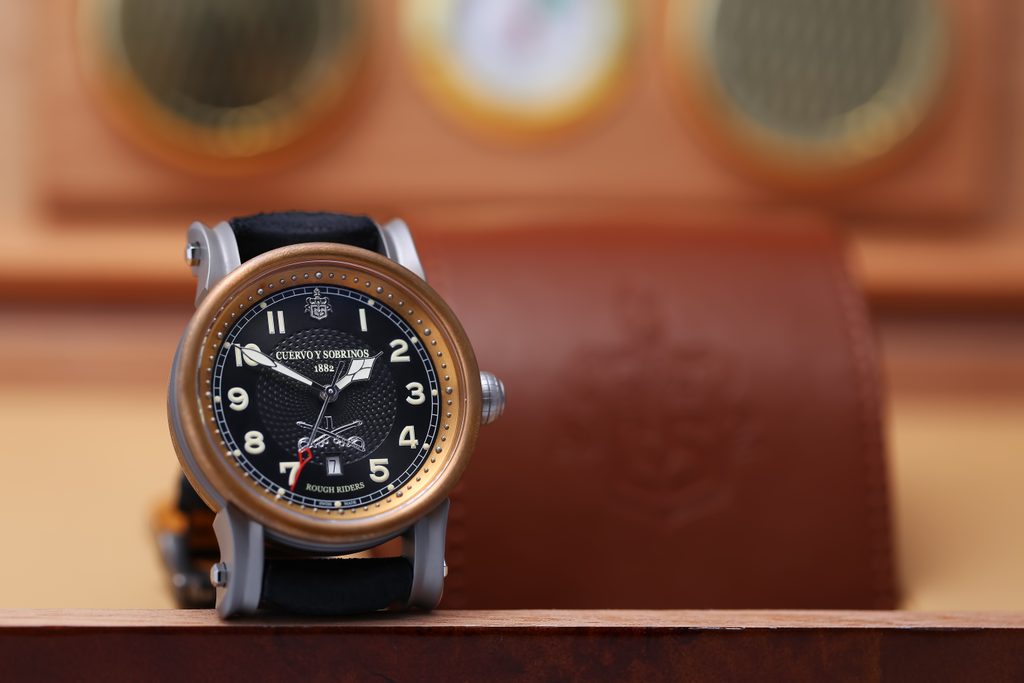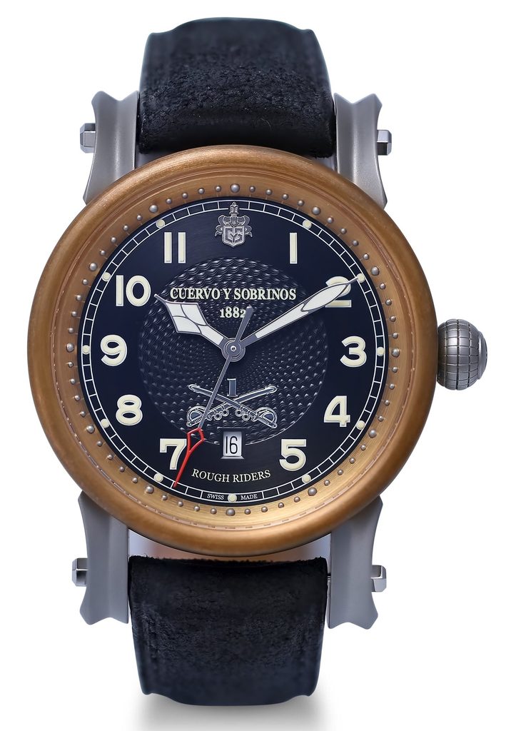 Série Cuervo y Sobrinos Rough Riders je poctou odvážným kavaléristům, kteří bojovali ve španělsko-americké válce v roce 1898. Tato neohrožená skupina mužů, "drsných jezdců", se zúčastnila několika krutých bitev. Tento model, uložený v 45mm titanovém a bronzovém pouzdře, připomíná 125. výročí bitvy na kopci San Juan (1. července 1898) a odvážné muže, kteří bojovali za nezávislost Kuby na Španělsku. Na počest tohoto výročí je limitovaná edice omezena na 125 kusů.