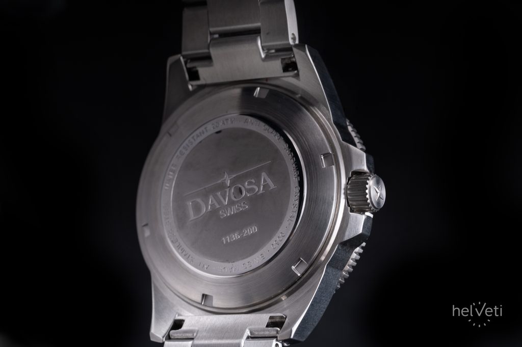 Pouzdro hodinek Davosa Argonautic 39 BS 161.532.20 je vyrobeno z ušlechtilé oceli a skrývá v sobě mechanický strojek DAV 3021 (který vychází ze strojku Sellita SW 200) s automatickým nátahem. Ten pracuje na frekvenci 28800 polokmitů za hodinu (4Hz), ukazatel data pak najdeme na tradiční pozici 3. Strojek také disponuje funkcí hackingu a možností manuálního nátahu. Přehledný číselník černé barvy je vyveden v potápkovém stylu a je chráněn safírovým sklíčkem s antireflexní vrstvou, nemusíte se tedy bát jakéhokoli poškrábání. Vteřinová ručička ve tvaru šipky je ve tmě snadno čitelná díky luminiscenci (BGW09) na jejím ukončení.