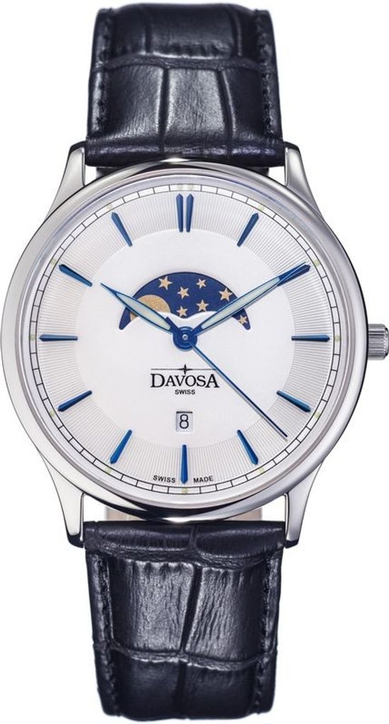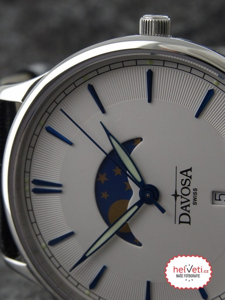 Davosa Flatline Phase of Moon zaujmou každého muže, který si potrpí na jednoduchý, elegantní vzhled hodinek, jasnou čitelnost a švýcarskou kvalitu.