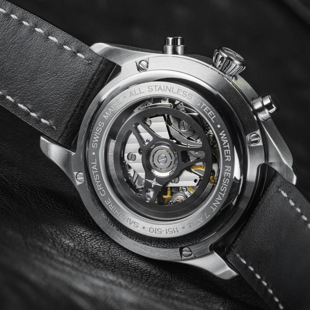 Kromě funkce stopek najdeme na hodinkách také ukazatel data na šesté hodině a sekundovou ručku na subciferníku na deváté hodině. Stupnice tachymetru na vnějším okraji číselníku navíc umožňuje přesné měření rychlosti na jeden kilometr. Pro lepší orientaci a čitelnost jsou ručky stopek a malá sekundová ručka zvýrazněny červenou barvou. Zobrazení času je stejně dobře čitelné i za zhoršené viditelnosti díky velkorysému nanesení vrstvy SuperLumiNova® BGW9 na ručně aplikované indexy, hodinovou a minutovou ručku.