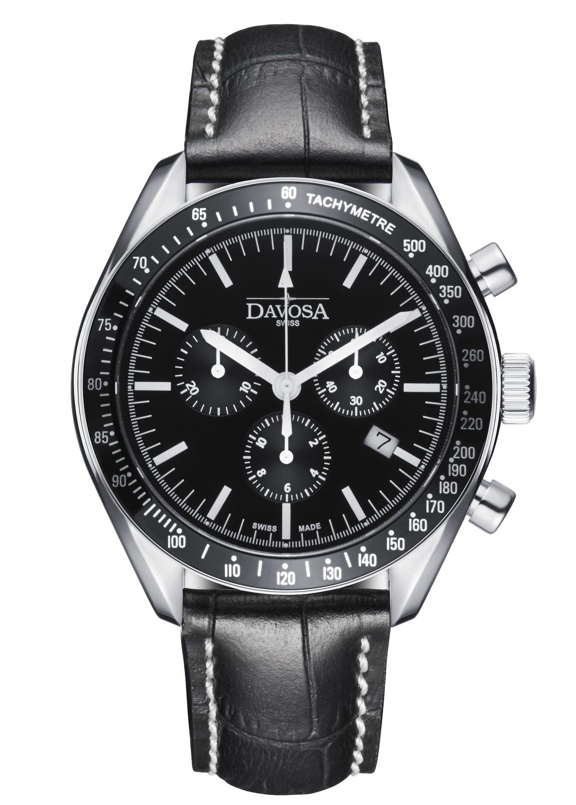 Davosa Race Legend jsou reprezantivní, sportovně střižené hodinky s pouzdrem z ušlechtilé oceli a koženým páskem. K měření různých aktivit se dají použít stopky.