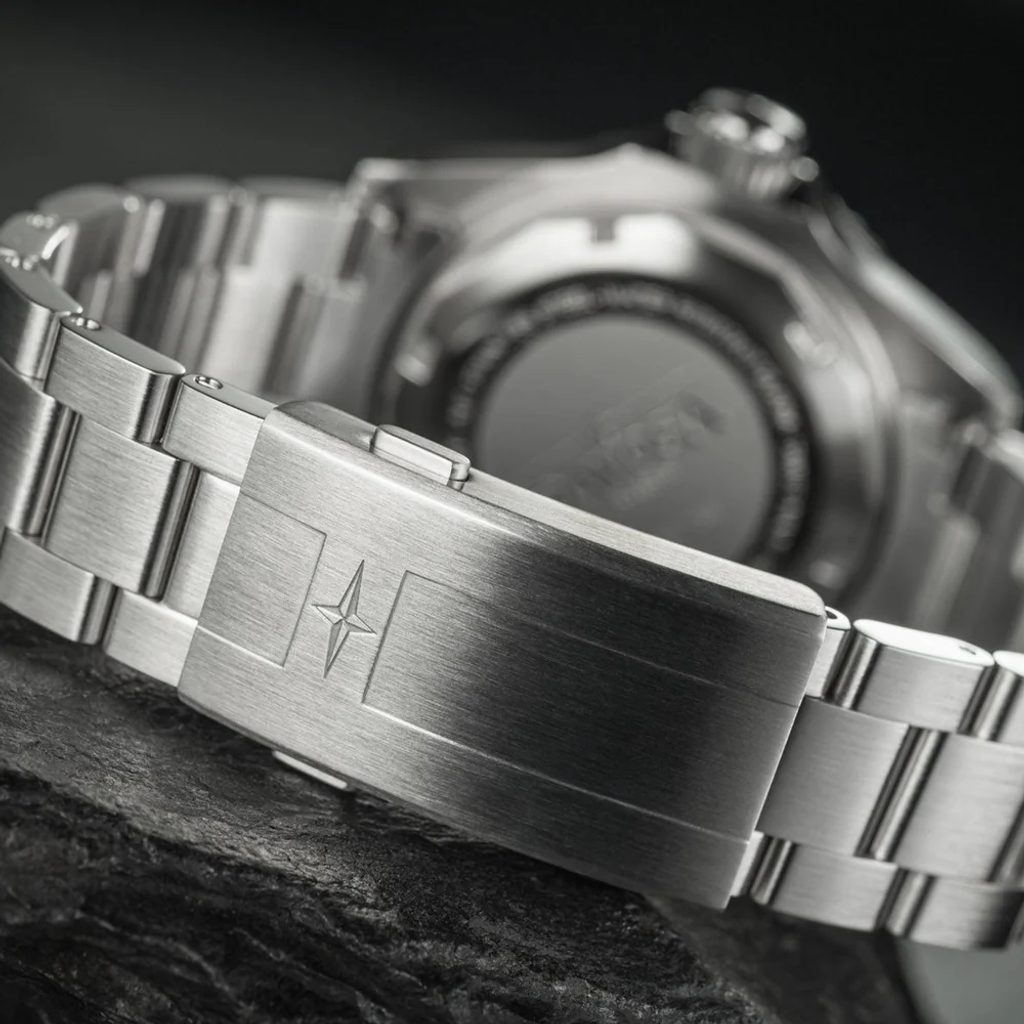 Další zajímavostí hodinek Ternos Professional je přepracovaný ocelový tah TriaLink. Jednotlivě šroubované pevné články tahu jsou po obou stranách zakončeny skládací sponou nově vyvinutou společností Davosa, která díky jemnému nastavení WaveSlide uvnitř spony umožňuje pohodlné nastavení bez dalších nástrojů.