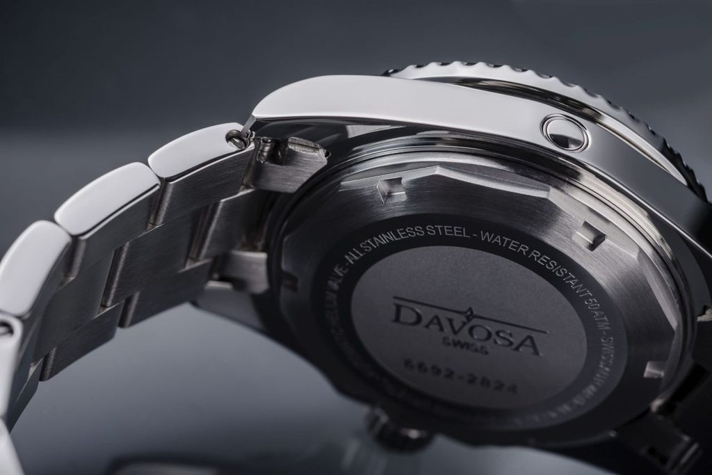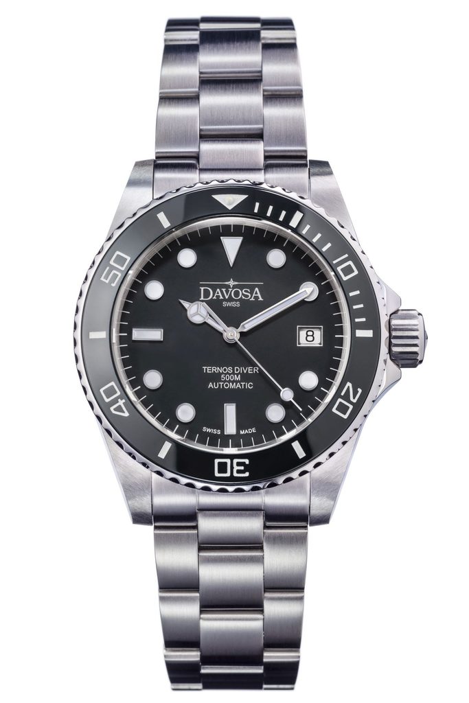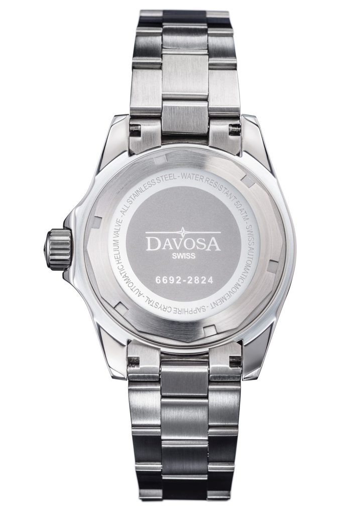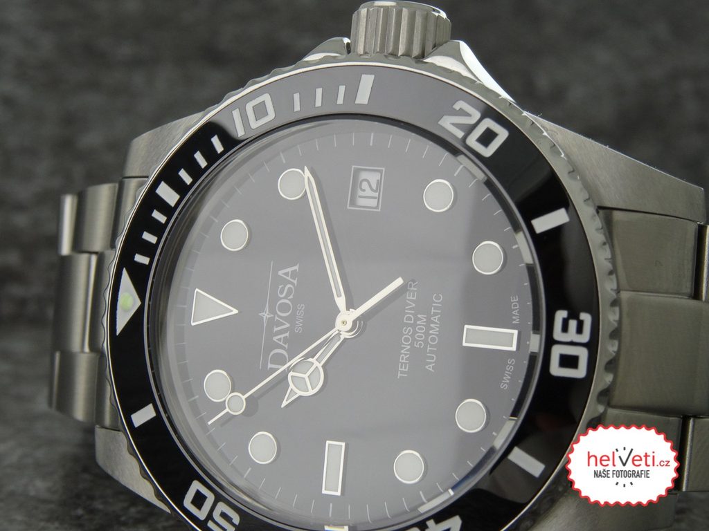 Davosa Ternos Professional 161.556.50 jsou plnokrevné potápěčské hodinky s odolností 500m a heliovým ventilem pro bezproblémové vyrovnání tlaku při vynoření. Přehledný a skvěle čitelný ciferník chrání odolné, safírové sklíčko a otočná luneta je osazena keramickou vložkou. Bytelnost hodinek dále podtrhuje šroubovací korunka a zadní víčko. Hodinky jsou doplněny kvalitním ocelovým tahem, který ještě umocňuje celkový masivní dojem. O pohon se pak stará klasický, mechanický strojek DAV 3021 (který vychází ze strojku ETA 2824 nebo sellita SW 200) s frekvencí 4Hz a rezervou nátahu 38h.
