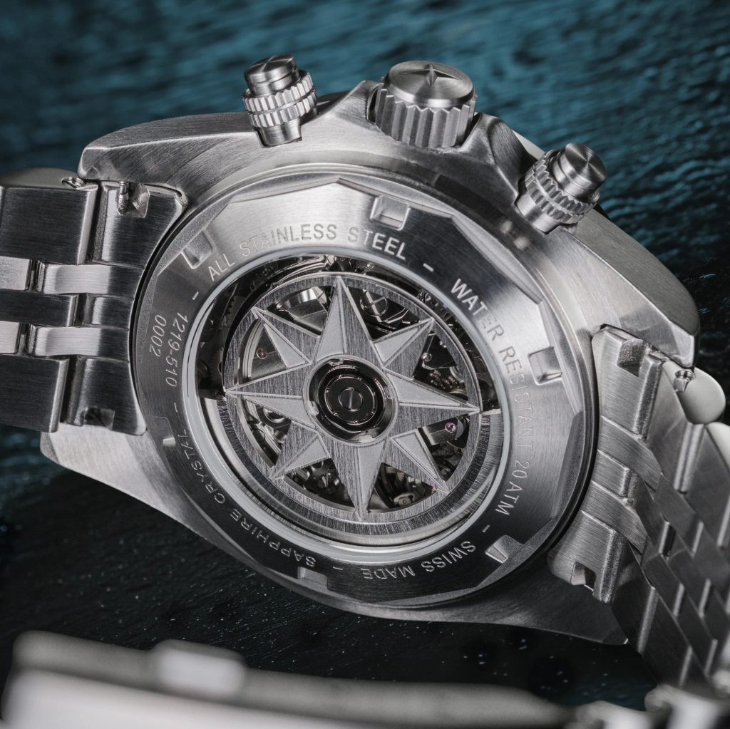 | Funkce | Datum, Otočná luneta, Korunka šroubovací, Tachymetr, Průhledné dýnko |