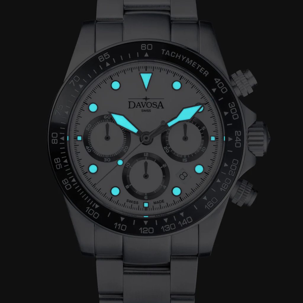 Číselník bílé barvy chrání safírové sklíčko, ktetré je téměř nepoškrabatelné a antireflexní vrstva usnadňuje odečítání času na přímém slunci. Na ručkách a indexech je nanesena luminiscenční vrstva SuperLuminova BGW9. Voděodolnost tohoto modelu je 200 m (20 ATM), zvládnou tedy téměř jakýkoli kontakt s vodou, včetně potápění. Tuto vysokou voděodolnost podporuje šroubovací korunka. Na fixní lunetě s keramickou vložkou najdeme tachymetrickou stupnici.