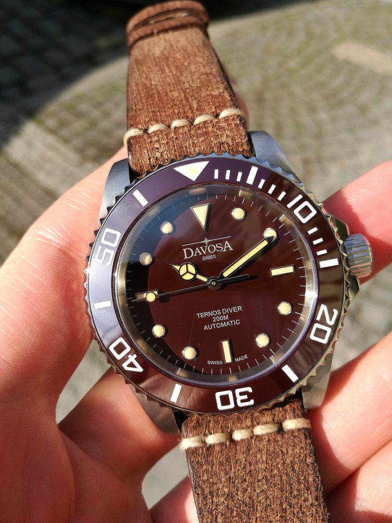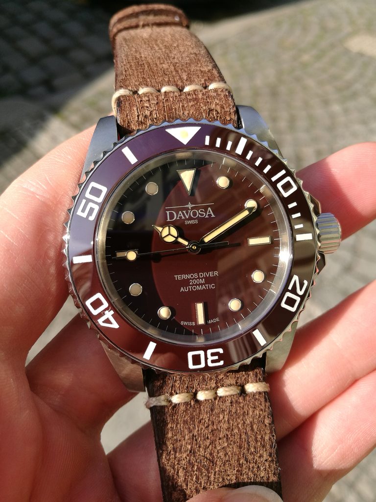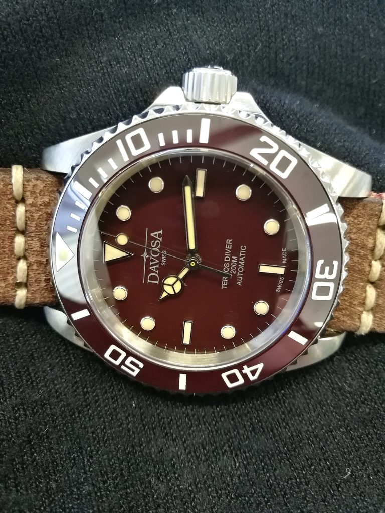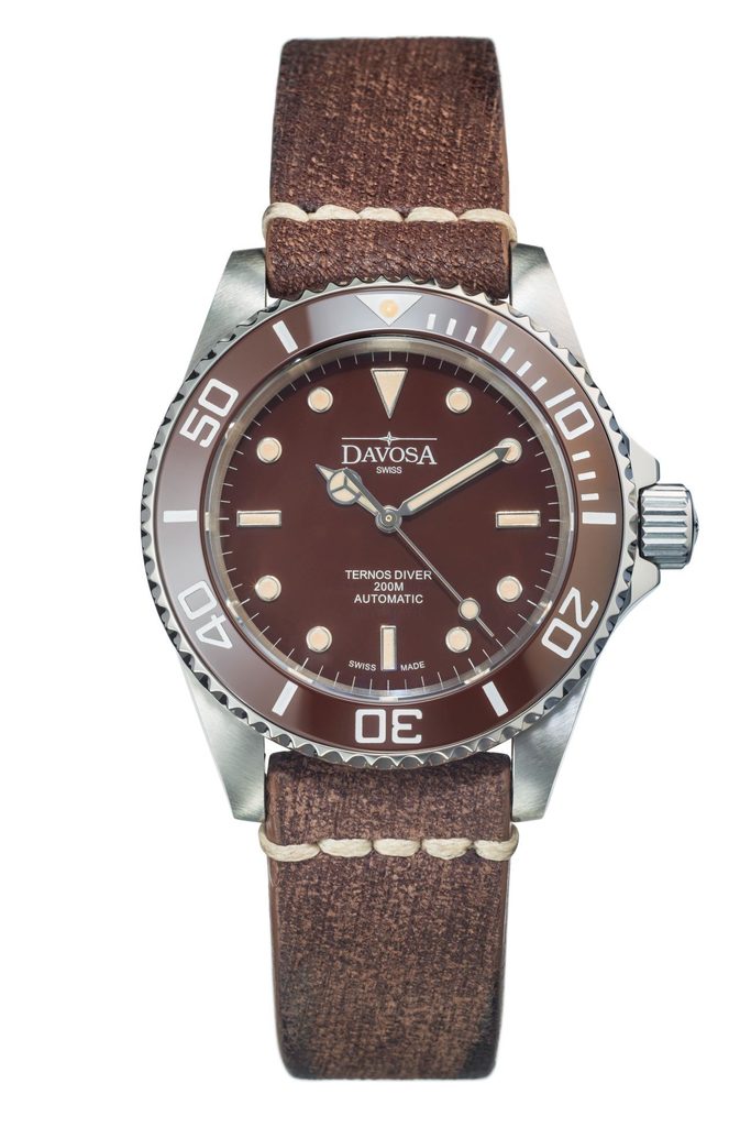 Davosa Ternos Vintage 161.555.85 jsou hodinky v potápěčském stylu s odolností 200m. Přehledný a skvěle čitelný ciferník chrání odolné, safírové sklíčko a otočná luneta je osazena keramickou vložkou. Bytelnost hodinek dále podtrhuje šroubovací korunka a zadní víčko. Hodinky jsou doplněny kvalitním koženým páskem ve vintage provedení. O pohon se pak stará klasický, mechanický strojek DAV 3021 (který vychází ze strojku ETA 2824 nebo Sellita SW 200) s frekvencí 4Hz a rezervou nátahu 38h.