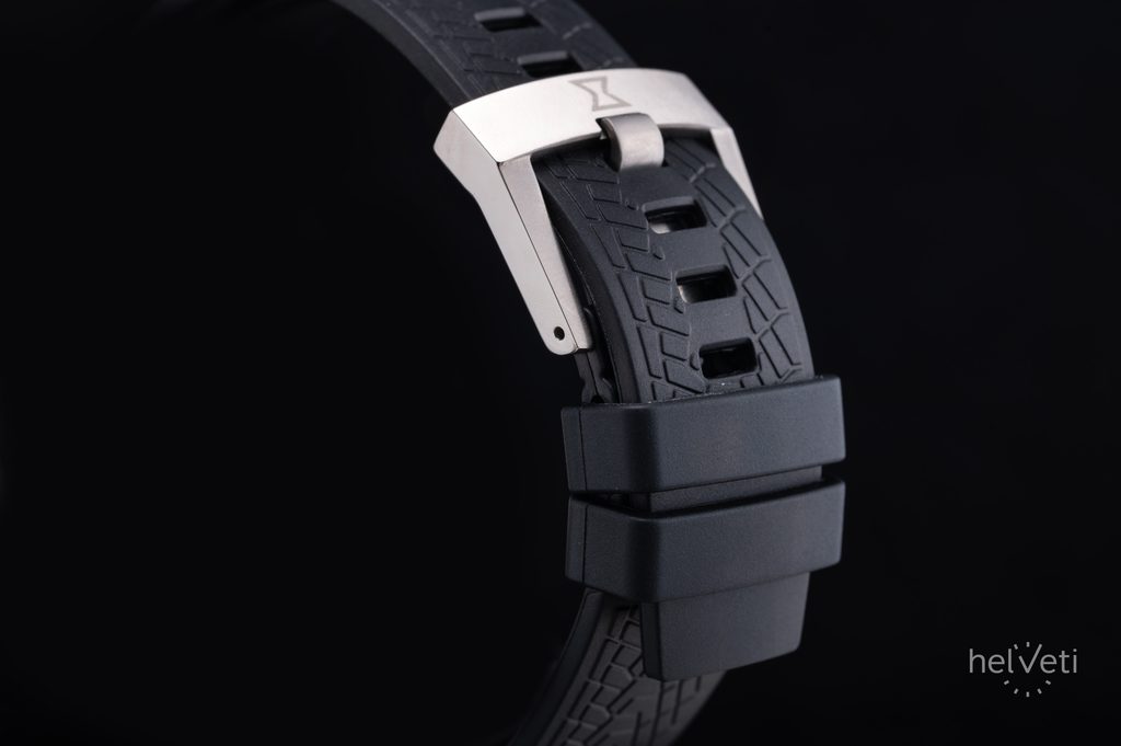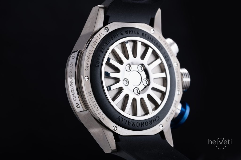 Pouzdro je z titanu ve stříbrné úpravě a je doplněné kaučukovým řemínkem černé barvy se vzorem pneumatiky. Vodotěsnost tohoto modelu je 100 m, hodinky tak snesou občasné povrchové plavání a sprchování. Průměr pouzdra činí 45 mm, jedná se tak o poměrně velké hodinky.
