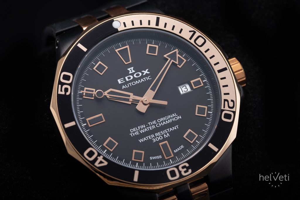 Hodinky EDOX Delfin The Original Automatic 80110-357NRCA-NIR jsou poháněny švýcarským mechanickým strojkem ETA 2824 nebo Sellita SW200 s automatickým nátahem. Strojek disponuje funkcí hacking a možností manuálního nátahu. Rezerva chodu činí klasických 38 hodin. Hodinky disponují ukazatelem data na tradiční pozici 3. hodiny.