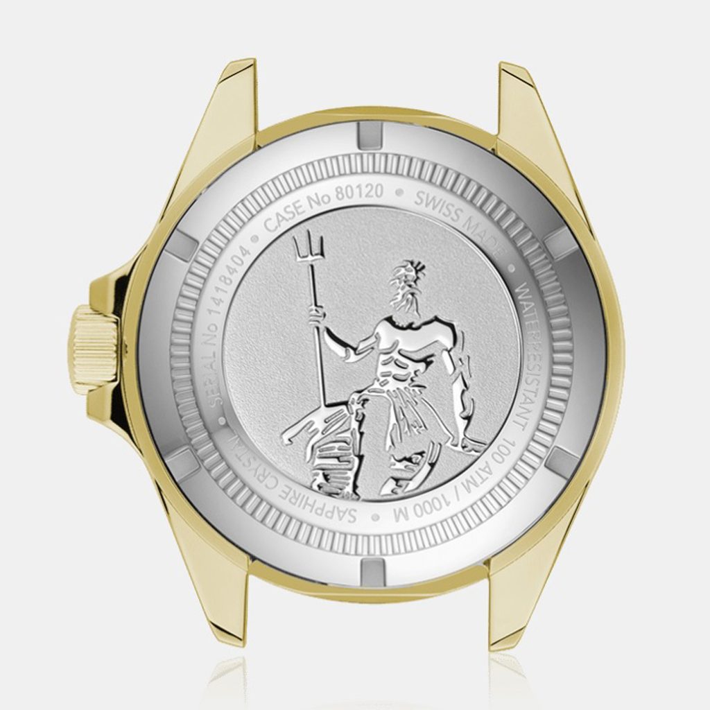 Na dýnku hodinek je vyobrazen bůh moře Neptun s jeho ikonickým trojzubcem.