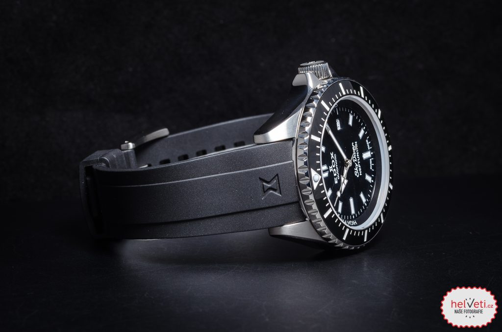Hodinky mají pouzdro z kvalitní ušlechtilé oceli na které navazuje řemínek z velmi příjemného kaučuku. Přehledný černý ciferník chrání safírové sklíčko, jenž je vysoce odolné vůči poškrábání.