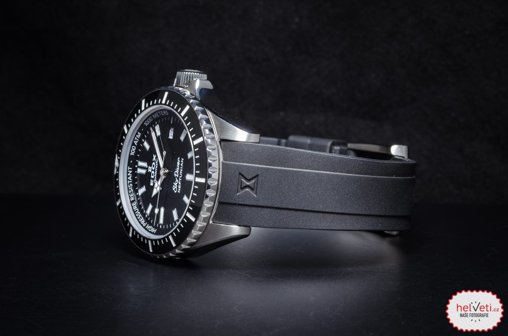 Model EDOX 80120-3NCA-NIN se vyznačuje typickým designem potápěčských hodinek, samozřejmostí je tedy výborná čitelnost, luminiscence SuporLuminova a jednosměrně otočná potápěčská keramická luneta v černé barvě. Voděodolnost 1000m je podpořena šroubovací korunkou a zaručuje odolnost při jakémkoli styku s vodou, včetně hloubkového potápění. Hodinky disponují automatickým heliovým ventilem pro bezproblémové vyrovnání tlaku při vynoření.