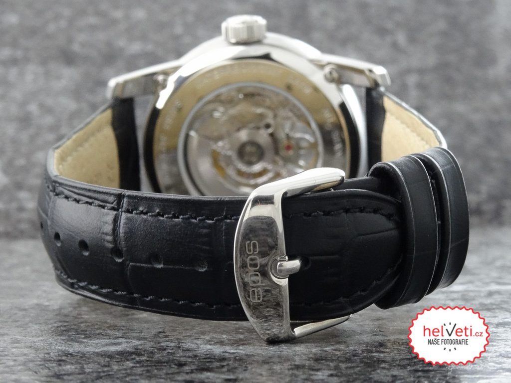 Model Epos Sophistique 3423.135.20.18.25 disponuje automatickým švýcarským strojem ETA 2824 s rezervou chodu až 40 hodin. Jeho 28.800 kmitů za hodinu lze pozorovat skrz průhledný ciferník hodinek. Hodinky jsou vyrobeny v kombinaci ocelového pouzdra a kvalitního koženého řemínku. Vzhledem k příjemné velikosti pouzdra 40,5 mm budou ozdobou každého pánského zápěstí. Vodotěsnost činí 5 ATM - vhodné na mytí rukou, sprchování.