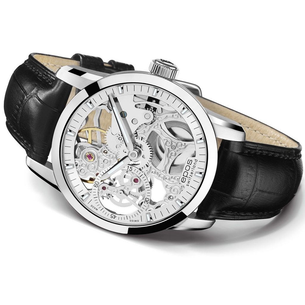 Pánské hodinky Epos Sophistique 3424.185.20.18.25 disponují mechanickým strojkem s ručním nátahem a průhledným ciferníkem. K dispozici je vůbec poslední kus tohoto modelu.