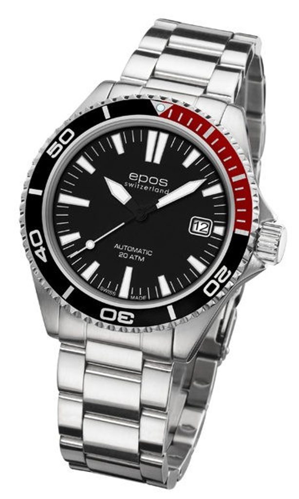 Model Epos Sportive 3413.131.91.15.30 je osazen švýcarským automatickým strojem ETA 2824 s rezervou chodu až 40 hodin. Strojek disponuje tzv. funkcí hacking, kdy se při nastavování času zastaví vteřinová ručička. Hodinky jsou vyrobeny v kvalitním celoocelovém zpracování. Ukazatel data naleznete na obvyklé 3. pozici. Vodotěsnost činí 20 ATM - vhodné na běžné koupání, či potápění. Jejich budoucí majitelé, jenž hodinky využívají na potápění, ocení kvalitní luminiscenci a jednosměrně otočnou lunetu. Samozřejmostí je čistě safírové sklo.