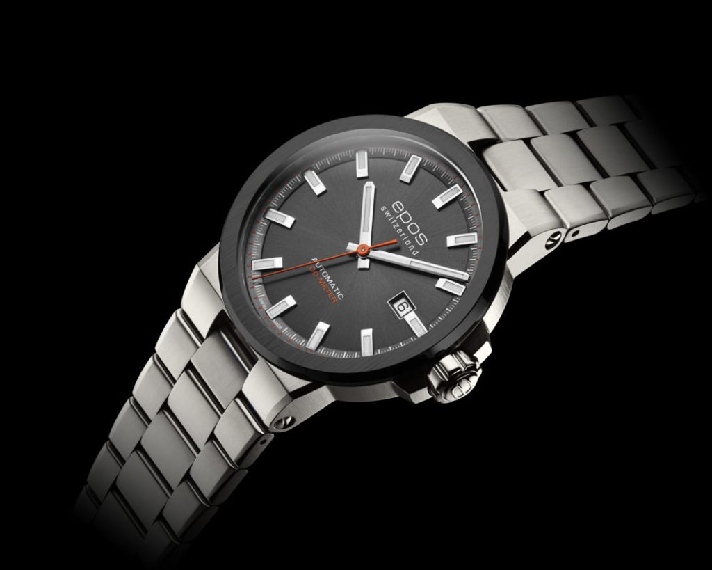 Model Epos Sportive 3442.132.35.14.30 je osazen švýcarským automatickým strojem Sellita SW200 , který disponuje tzv. funkcí hacking, kdy se při nastavování času zastaví vteřinová ručička. Na tradiční pozici 3 pak najdeme ukazatel data. Hodinky jsou vyrobeny v kombinaci ocelového pouzdra s částečnou PVD úpravou černé barv yna lunetě a ocelového náramku.