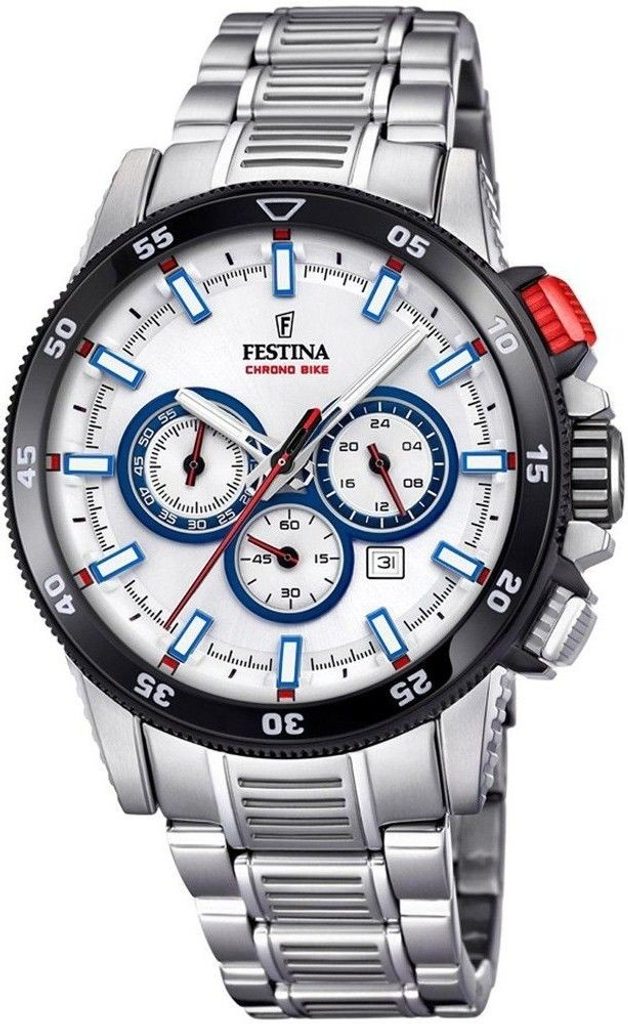 Hodinky Festina 20352/1 z řady Chrono Bike jsou ryze sportovním modelem, který je inspirován původní modelovou řadou Tour de France. Hodinky vyvedené v oblíbeném sportovním stylu zaujmou nejen cyklisty, ale všechny sportovně laděné muže.